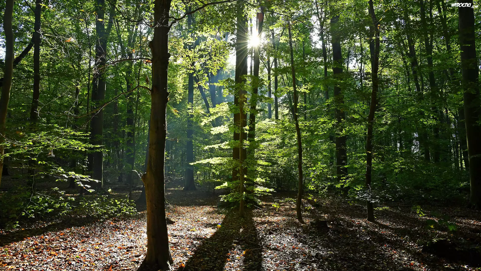 Zdjęcia, Las, Drzewa, Poranek, Przebijające światło