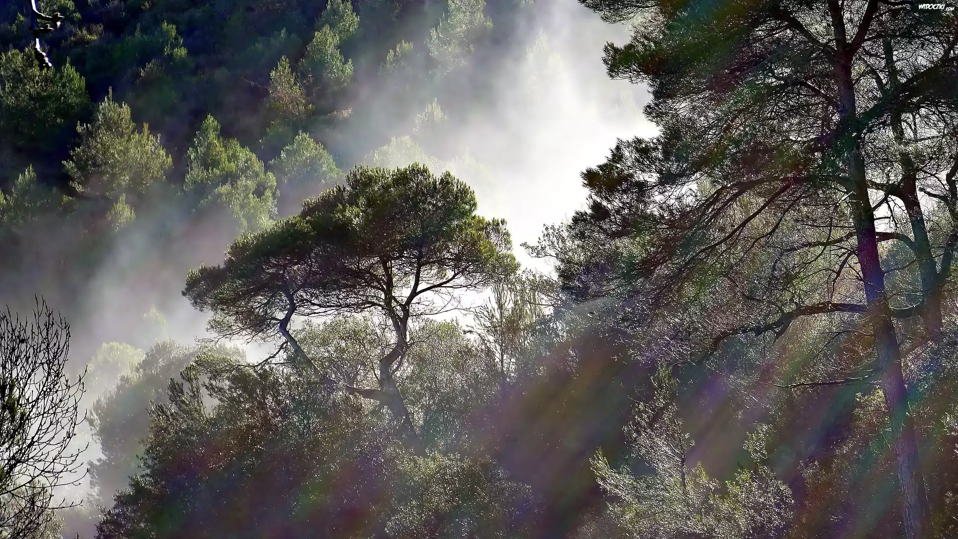 Zdjęcia, Las, Mgła, Poranek, Przebijające Światło