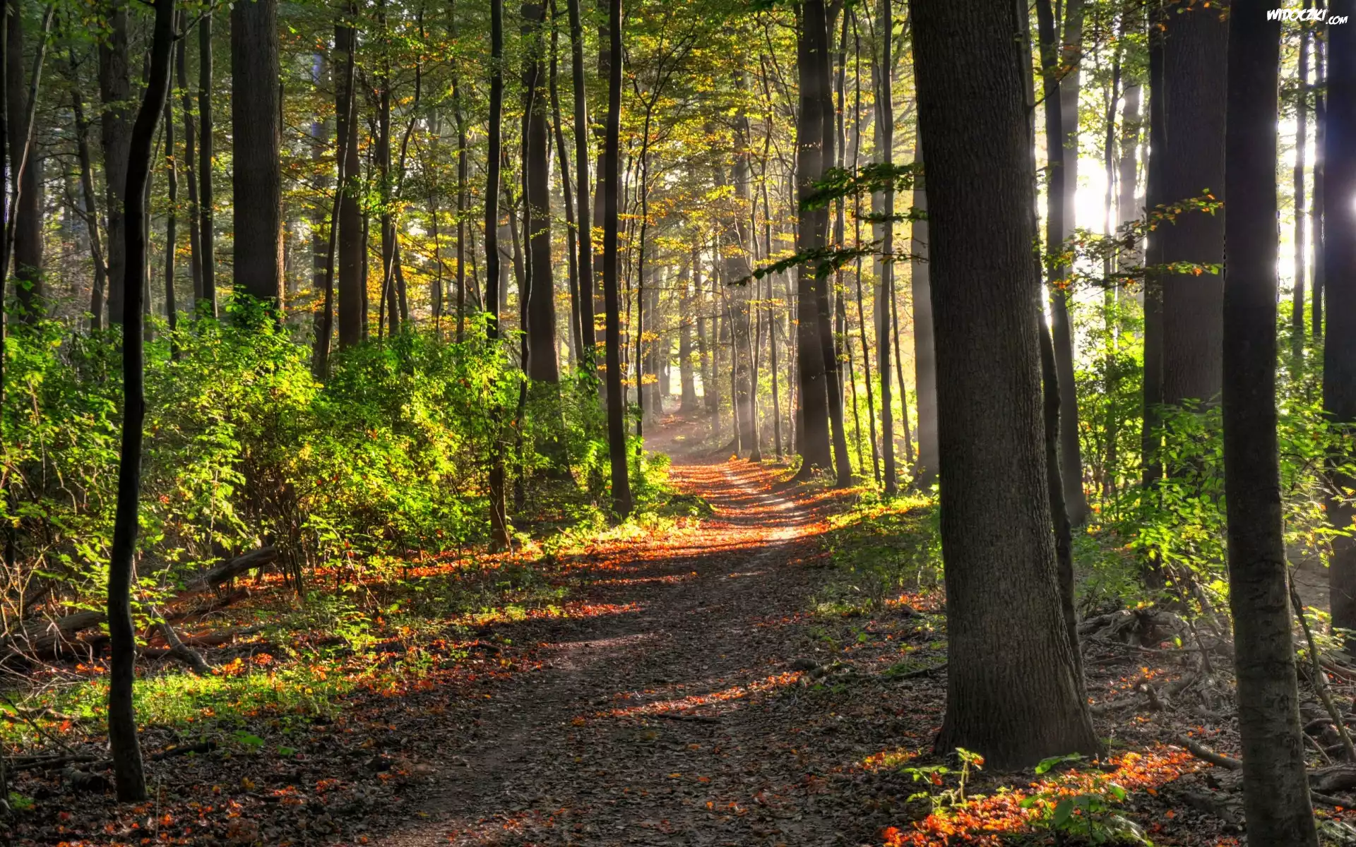 Zdjęcia, Las, Poranek, Przebijające, Światło
