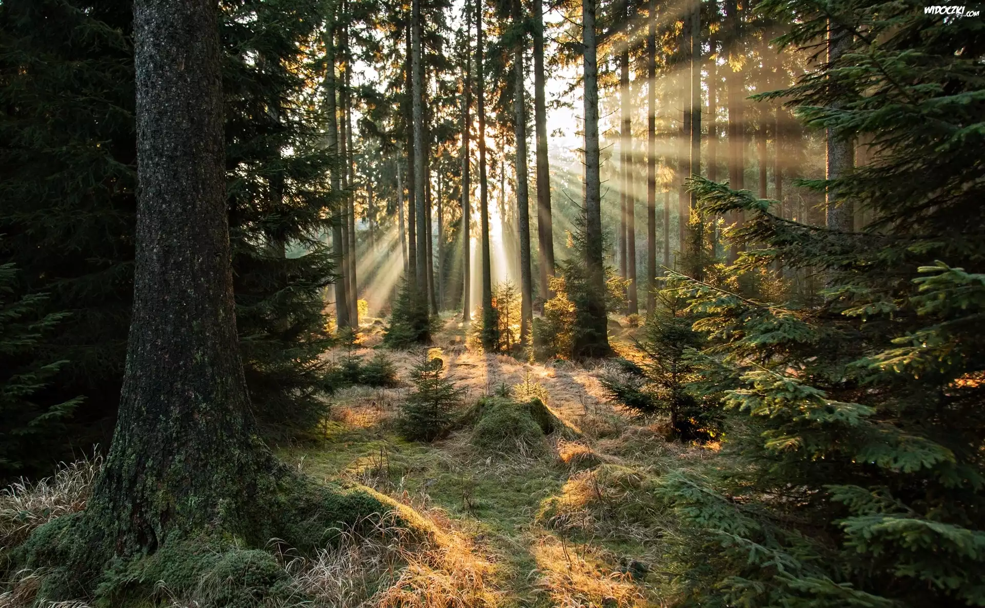 Zdjęcia, Las, Poranek, Promienie słońca, Przebijające Światło