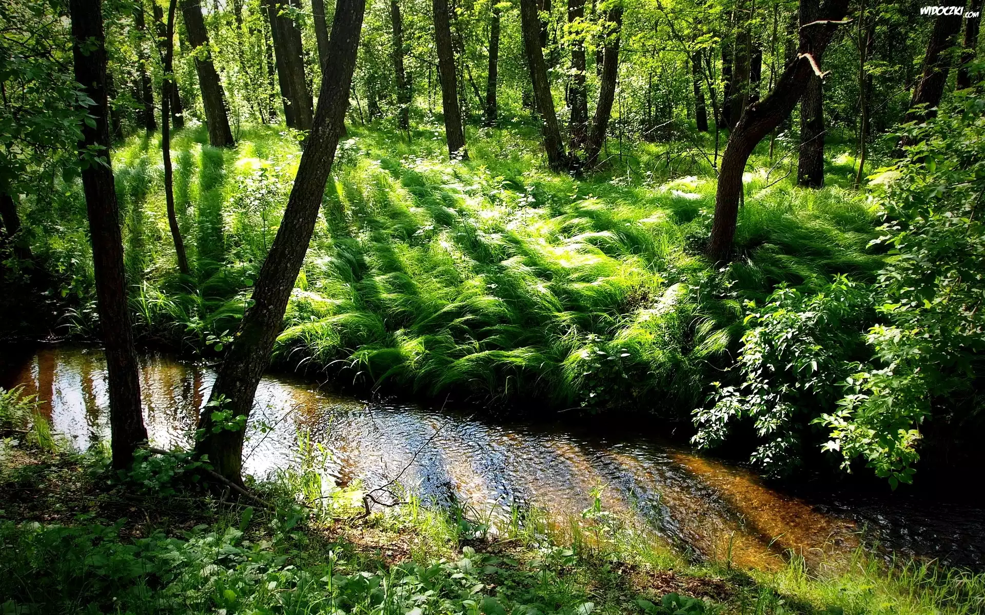 Zdjęcia, Las, Niewielka, Rzeka, Przebijające Światło