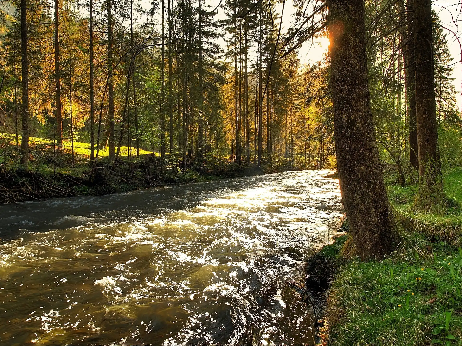 Las, Rwąca, Rzeka, Przebijające, Światło