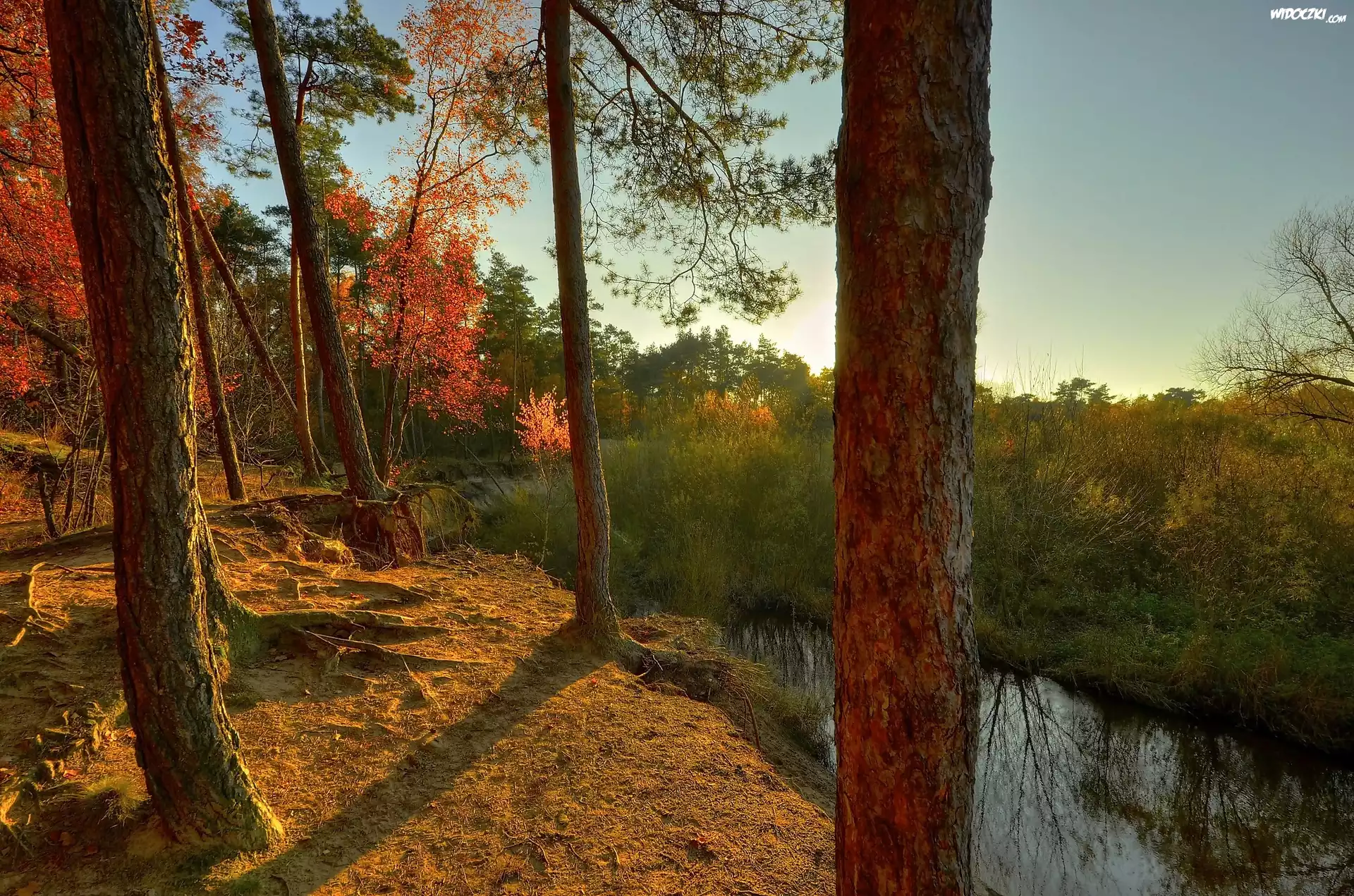 Zdjęcia, Las, Drzewa, Strumyk, Przebijające Światło
