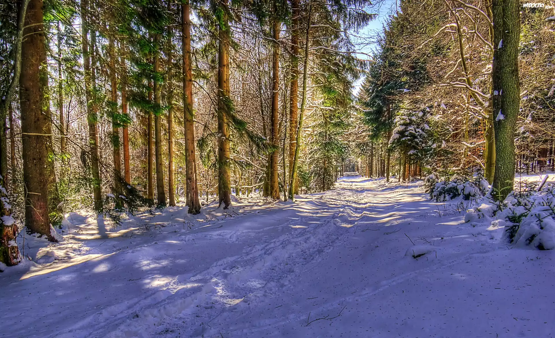 Zdjęcia, Las, Droga, Zima, Przebijające, Światło