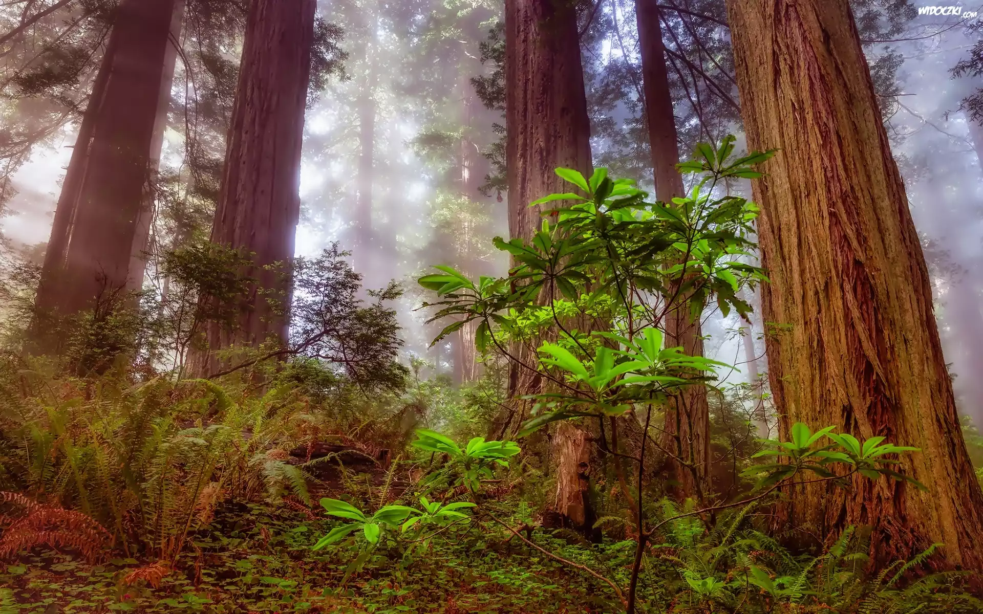 Zdjęcia, Las, Mgła, Roślinność, Paprocie