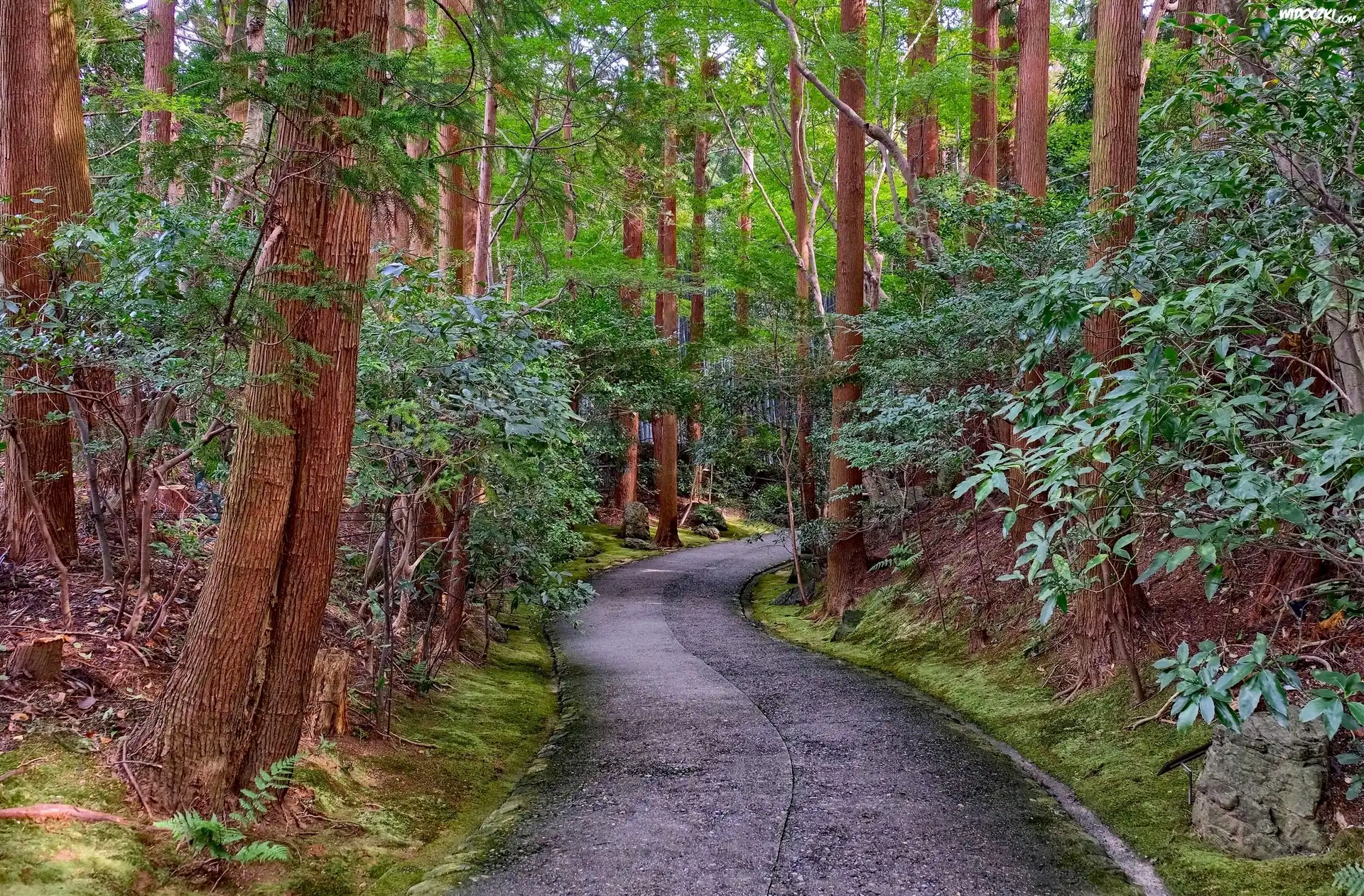Zdjęcia, Las, Drzewa, Rośliny, Droga