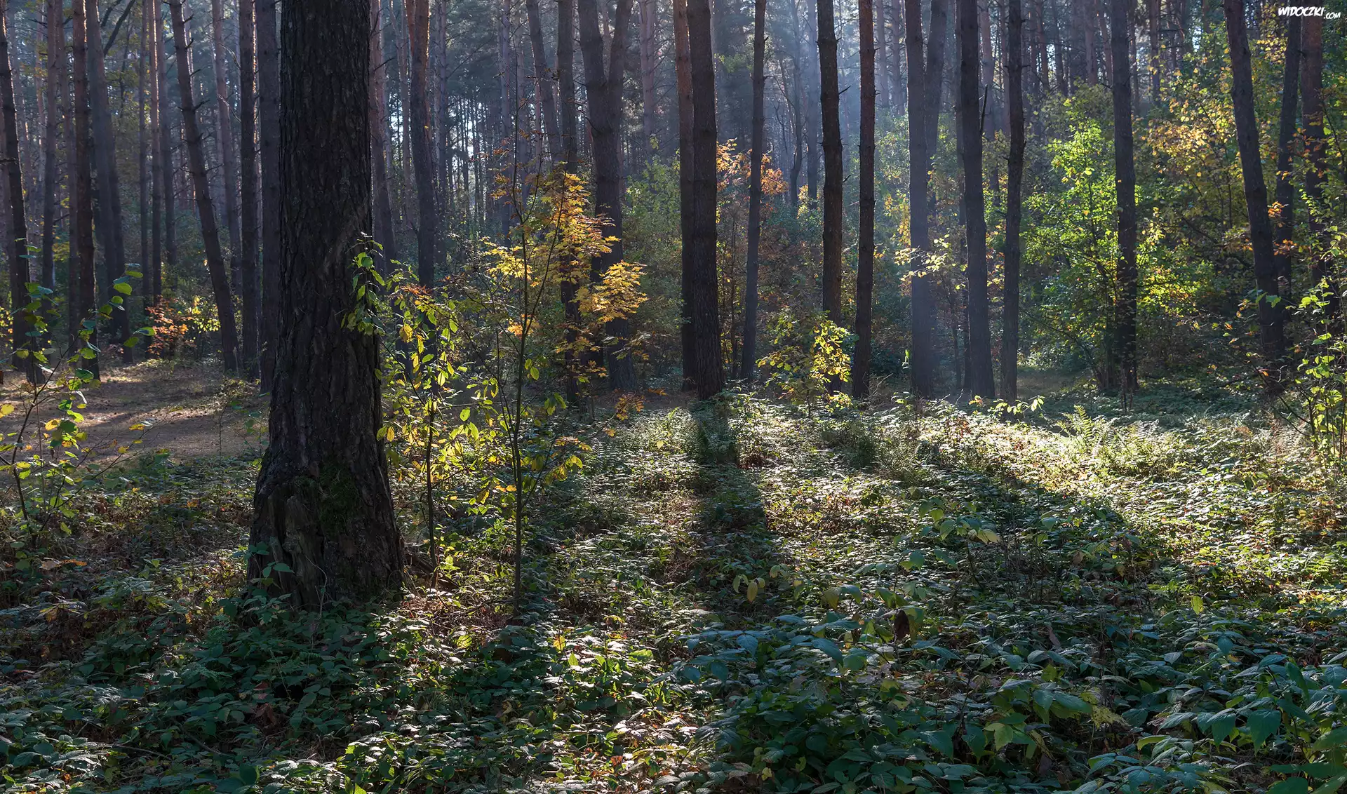 Zdjęcia, Las, Drzewa, Rośliny, Światło