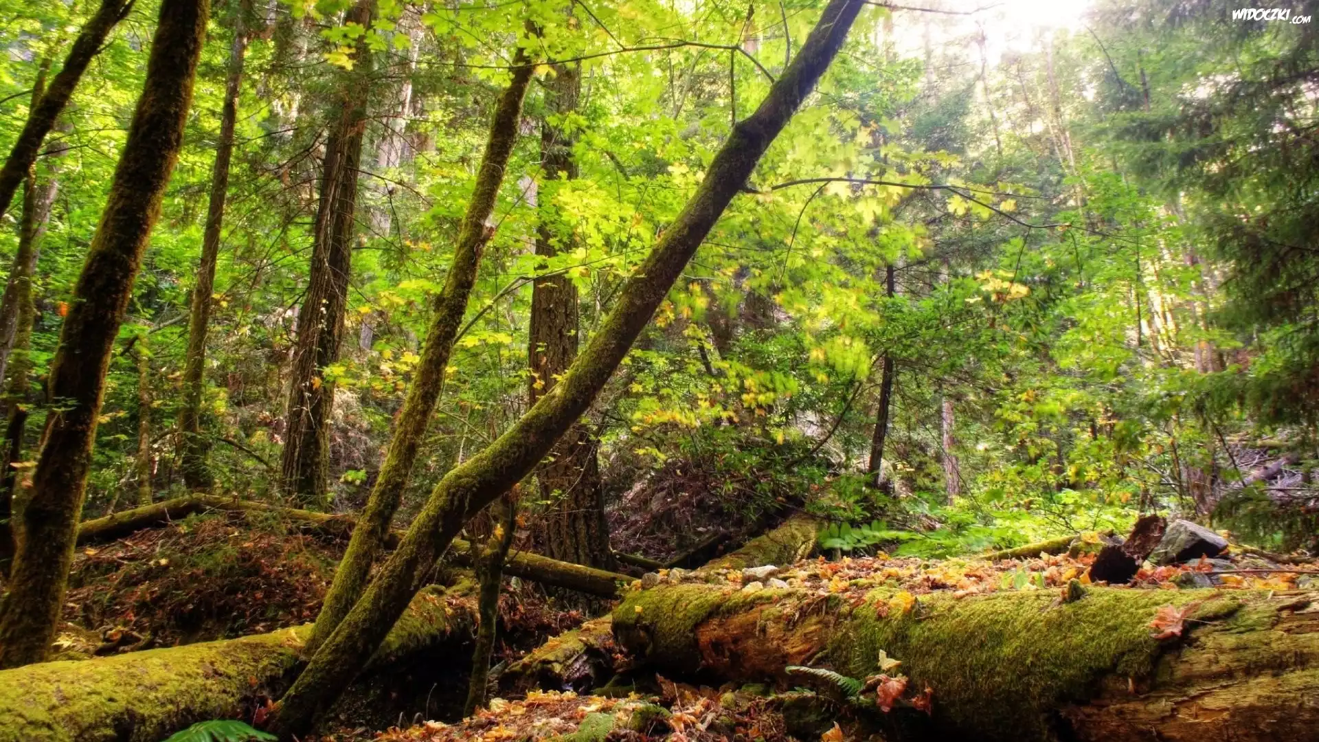 Zdjęcia, Las, Drzewa, Mech, Runo, Leśne