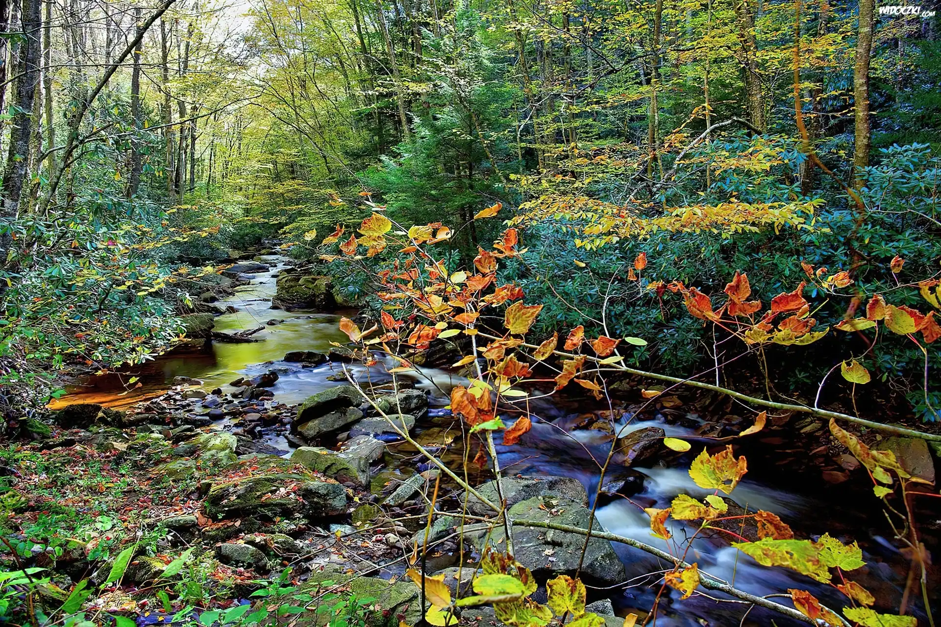 Zdjęcia, Rzeczka, Las, Jesień