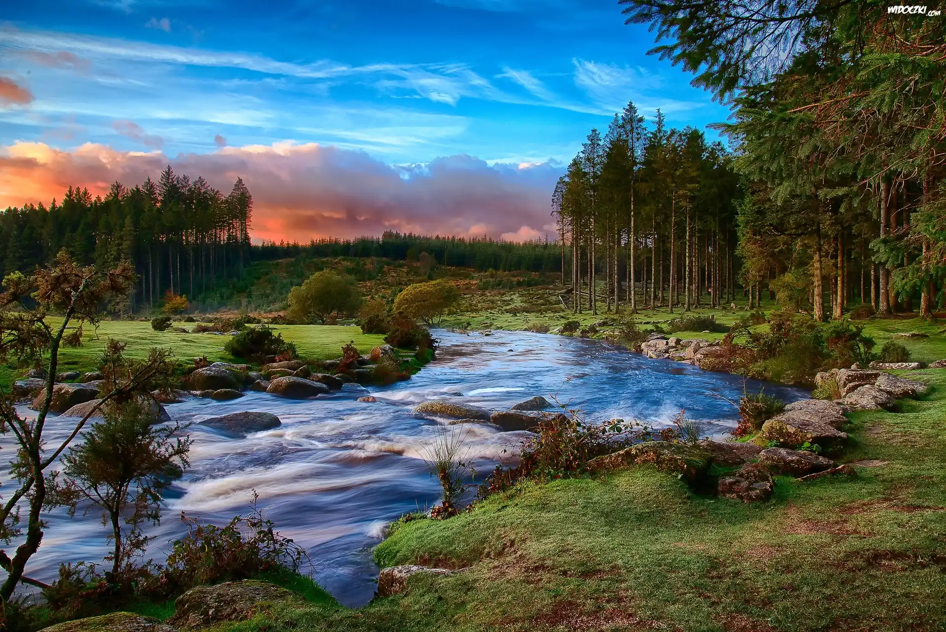 Zdjęcia, Rzeka, Las, Park Narodowy Dartmoor, Devon, Anglia