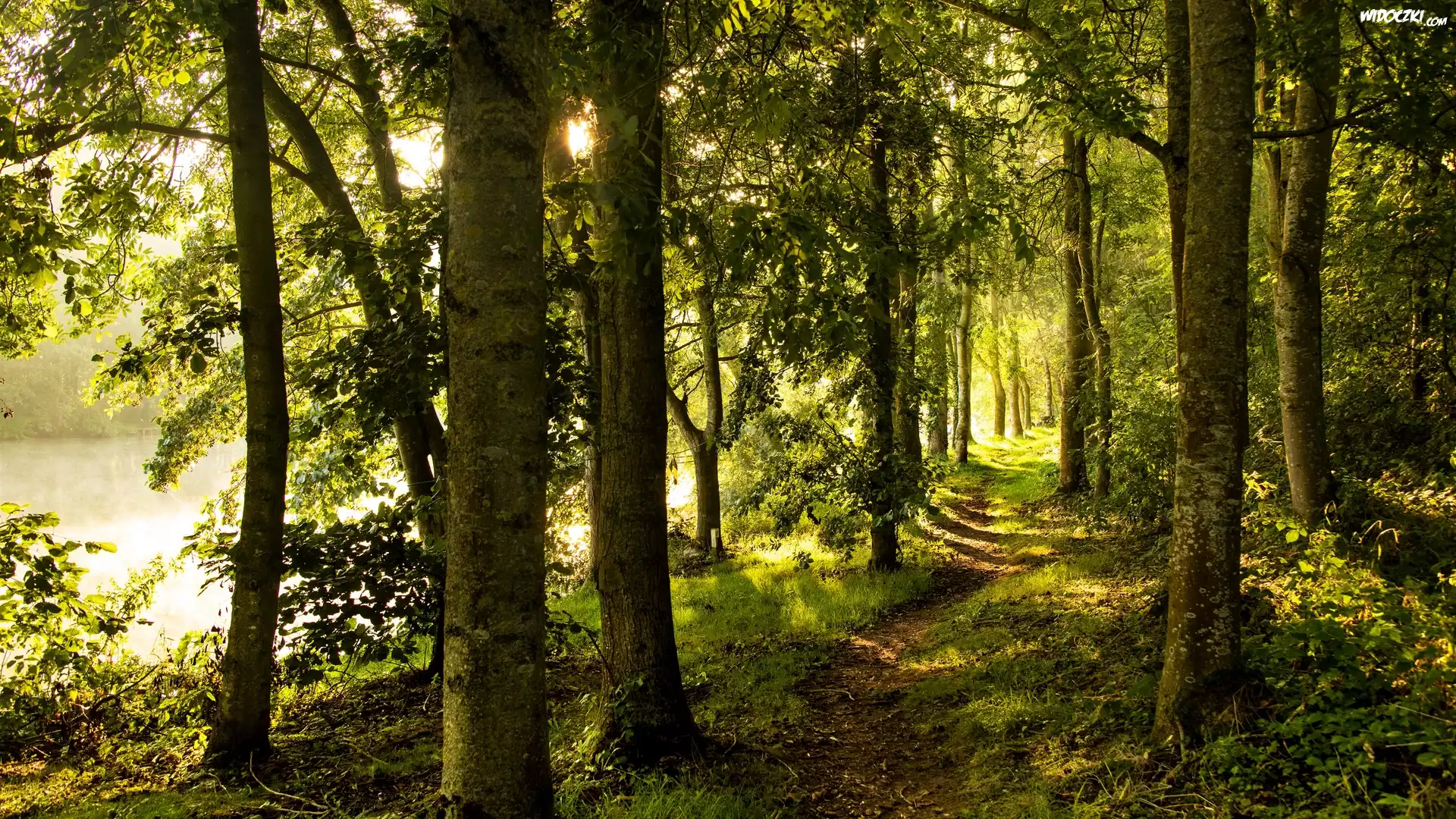 Zdjęcia, Las, Drzewa, Ścieżka, Rzeka, Roślinność