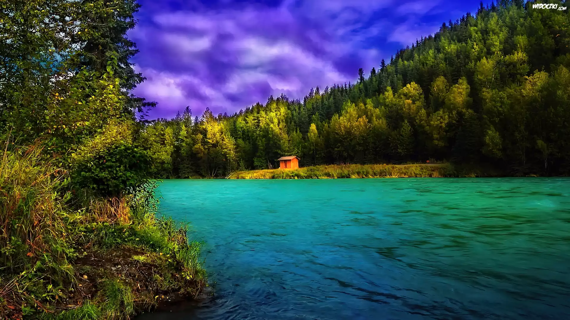 Zdjęcia, Rzeka, Las, Domek
