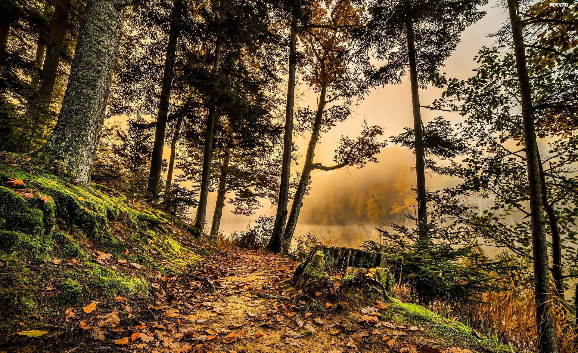 Zdjęcia, Las, Droga, Rzeka, Mgła