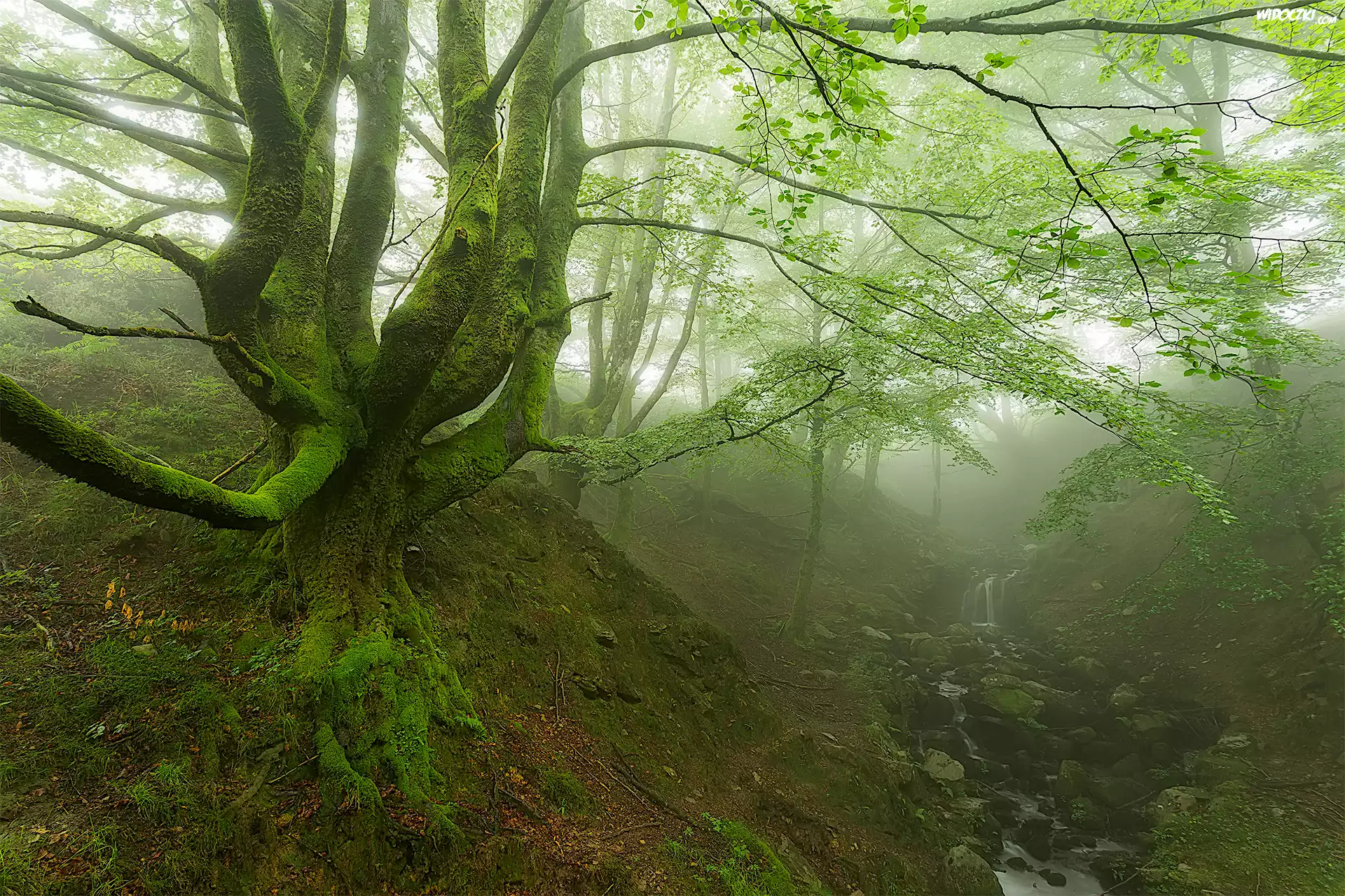 Zdjęcia, Las, Drzewa, Rzeka, Mgła