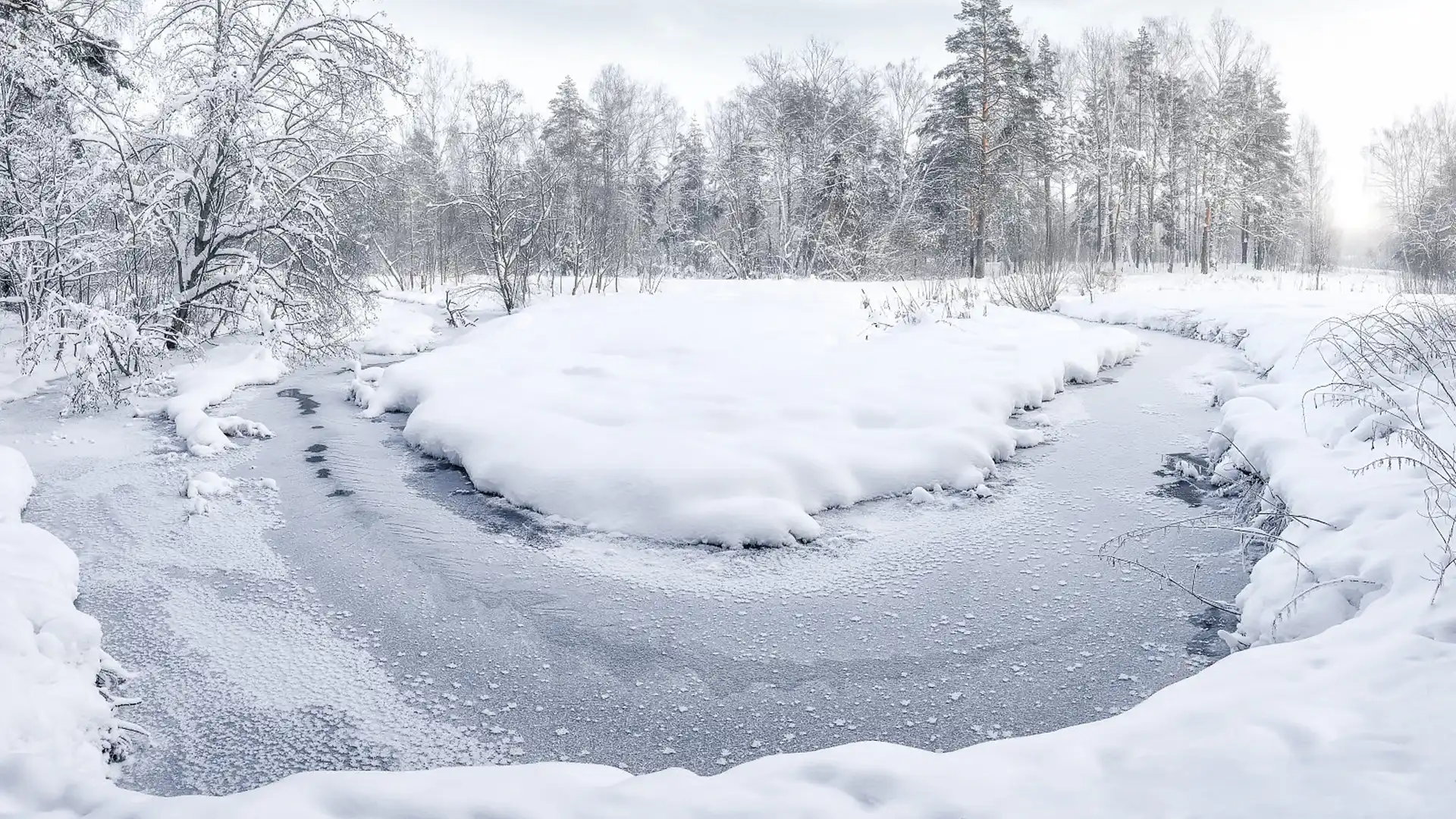 Zdjęcia, Zima, Las, Rzeka, Zakole, Drzewa