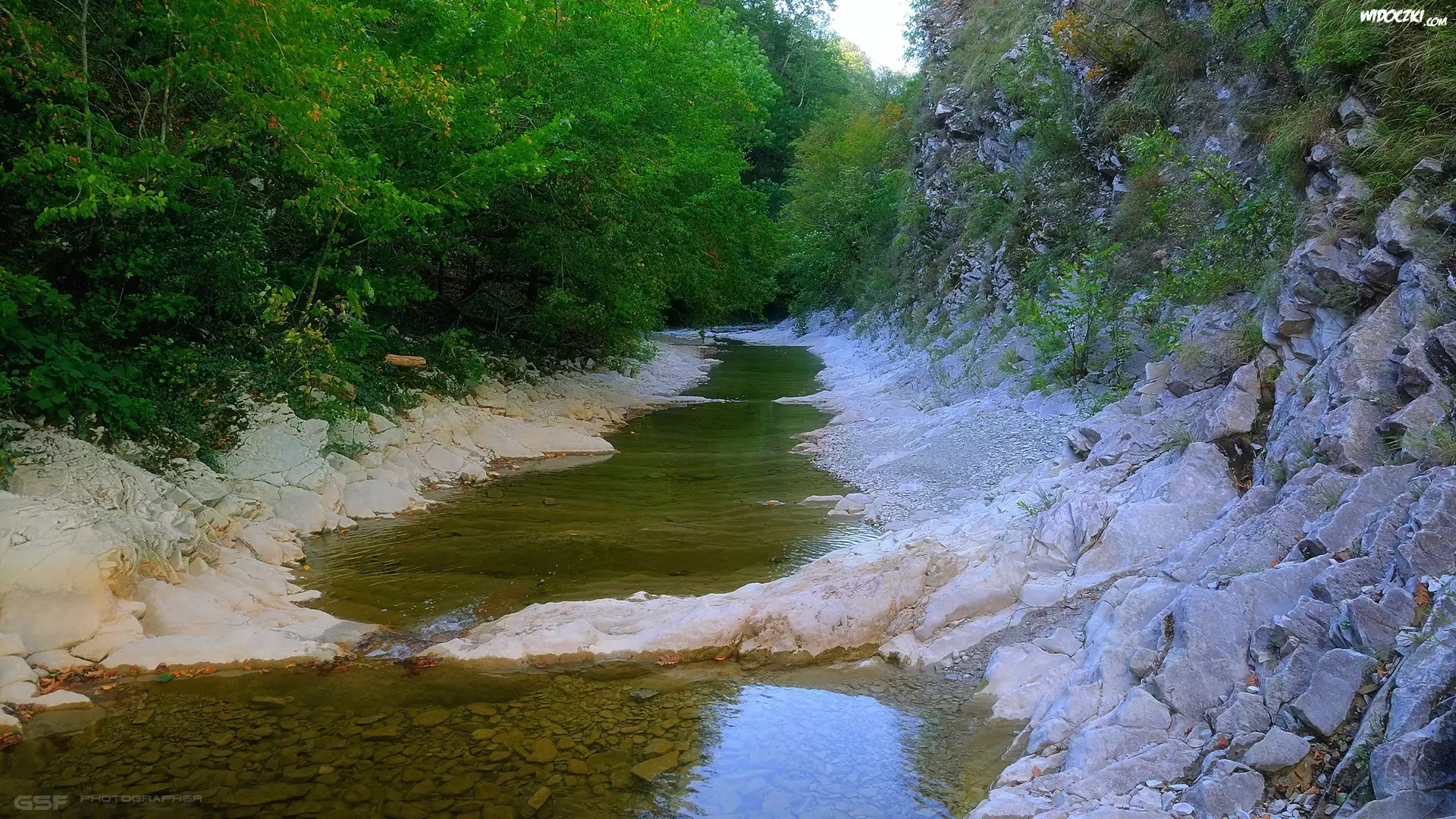 Zdjęcia, Las, Zielone, Drzewa, Rzeka, Kamienie
