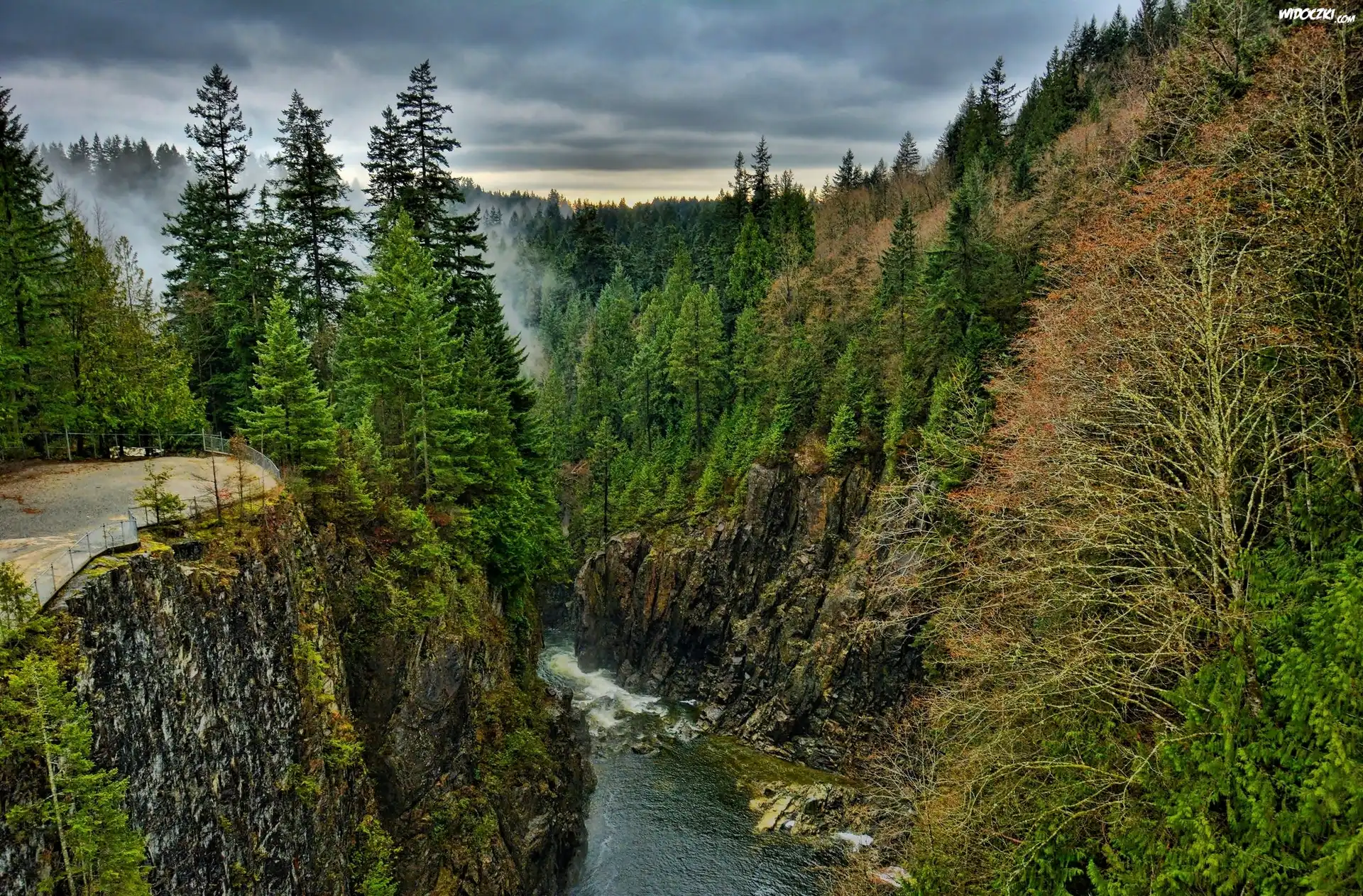 Zdjęcia, Las, Góry, Rzeka, Mgła