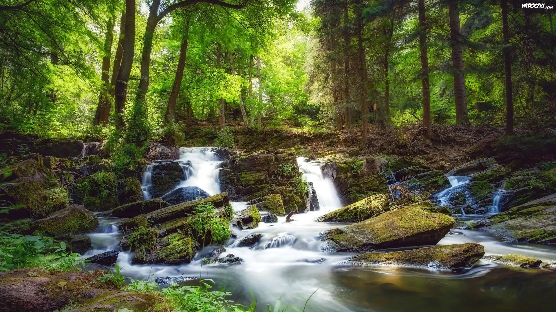 Zdjęcia, Las, Kamienie, Rzeka, Rośliny