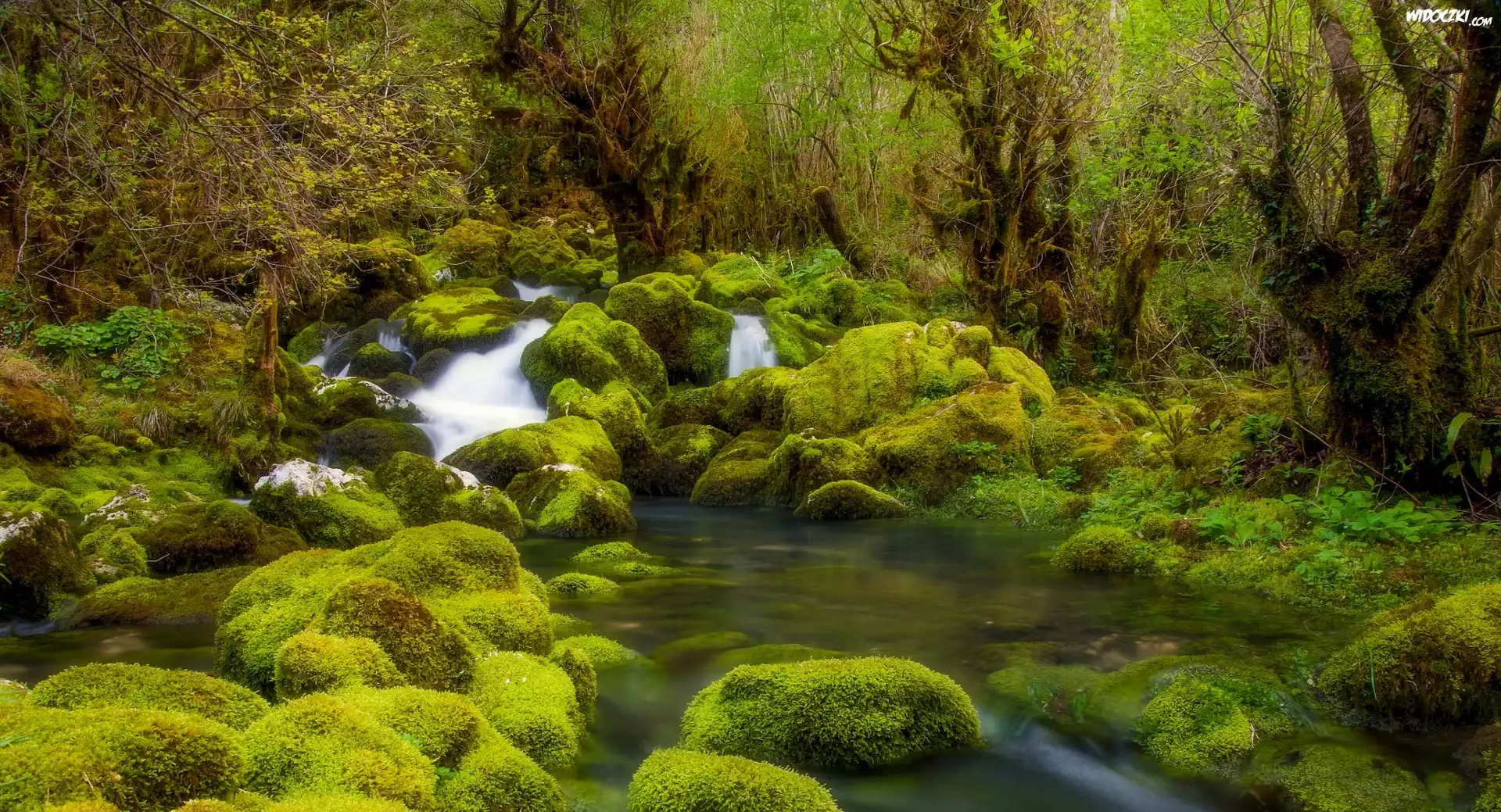 Zdjęcia, Las, Mech, Rzeka, Kamienie