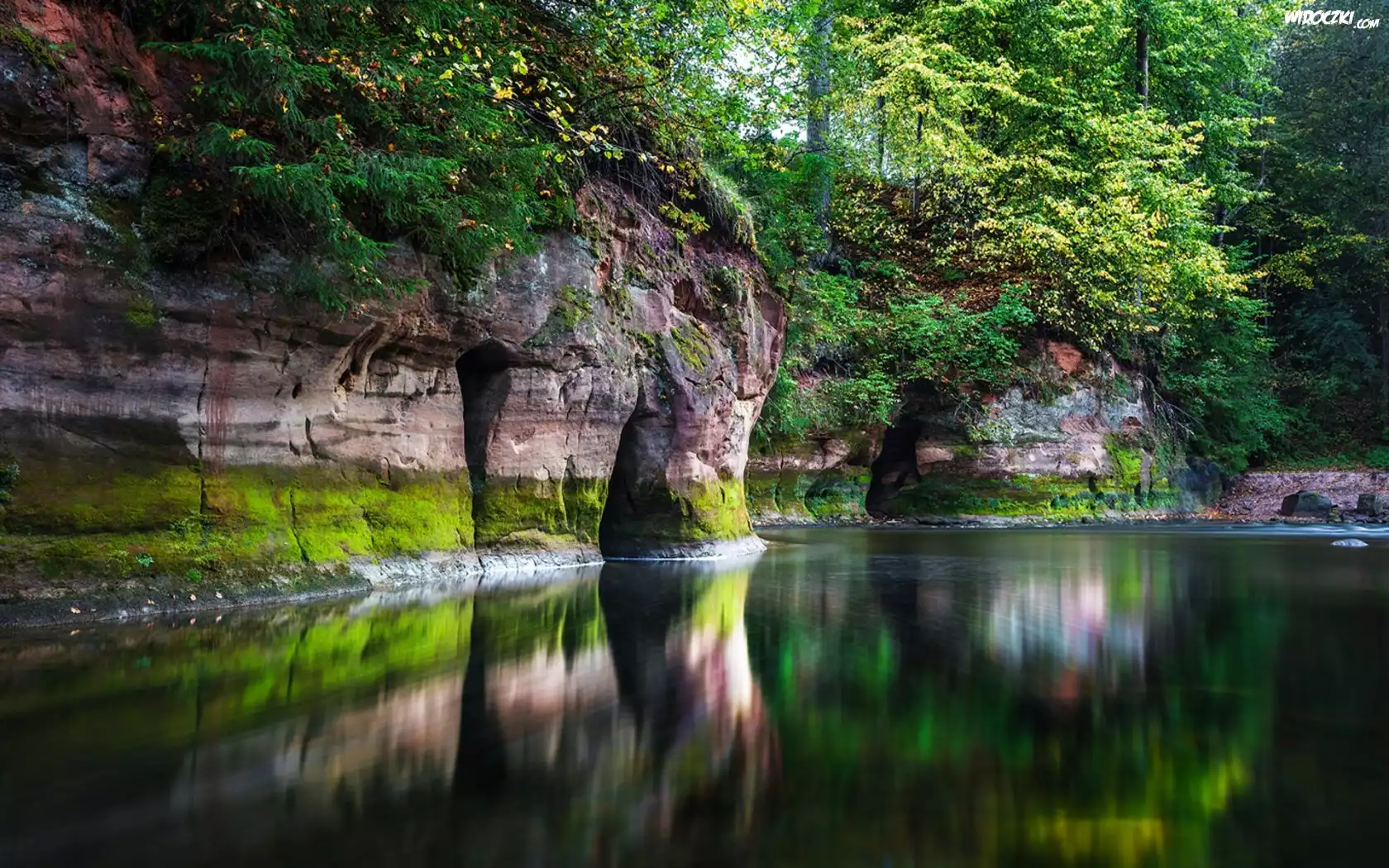Zdjęcia, Las, Skały, Rzeka, Odbicie