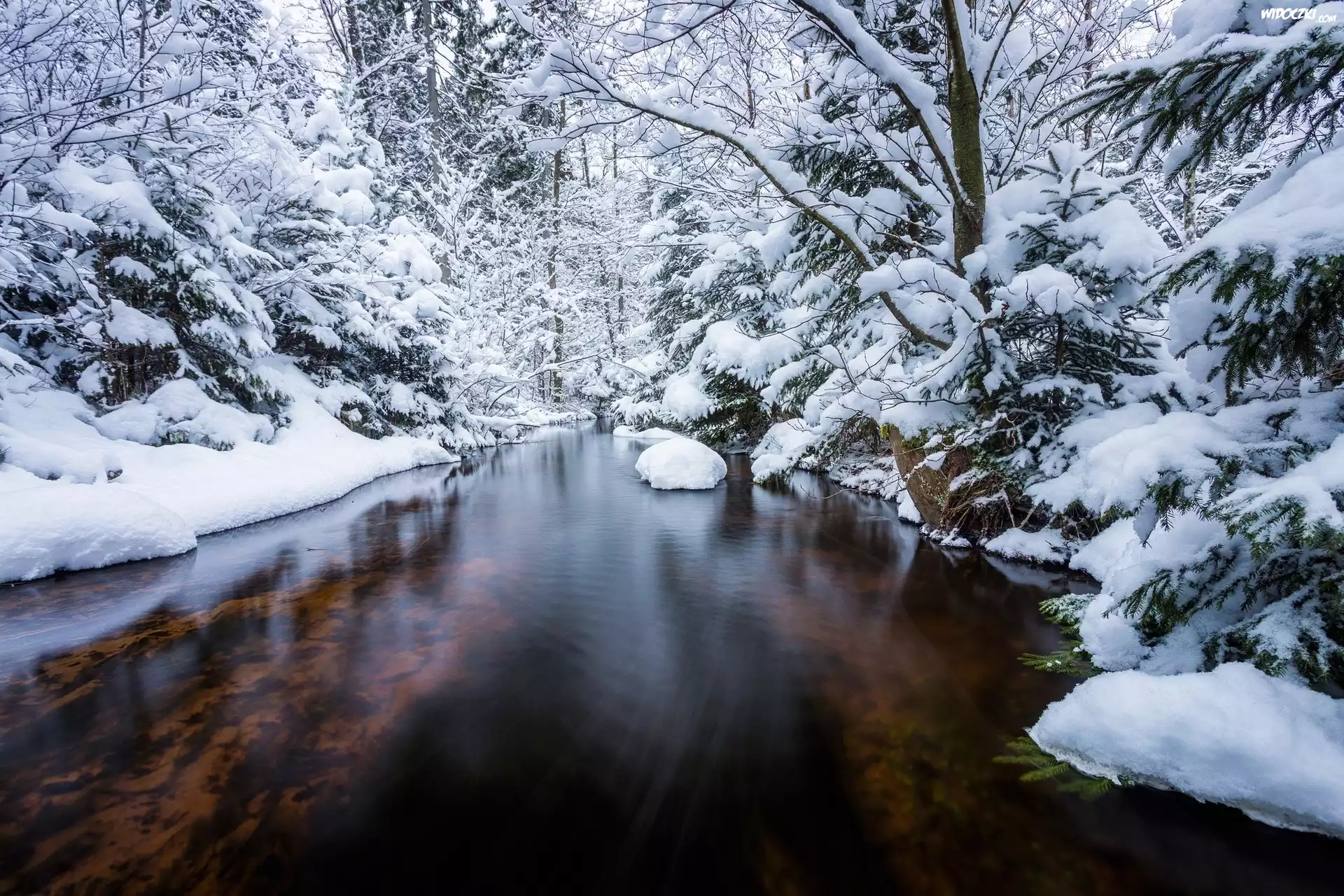 Zdjęcia, Rzeka, Las, Zima