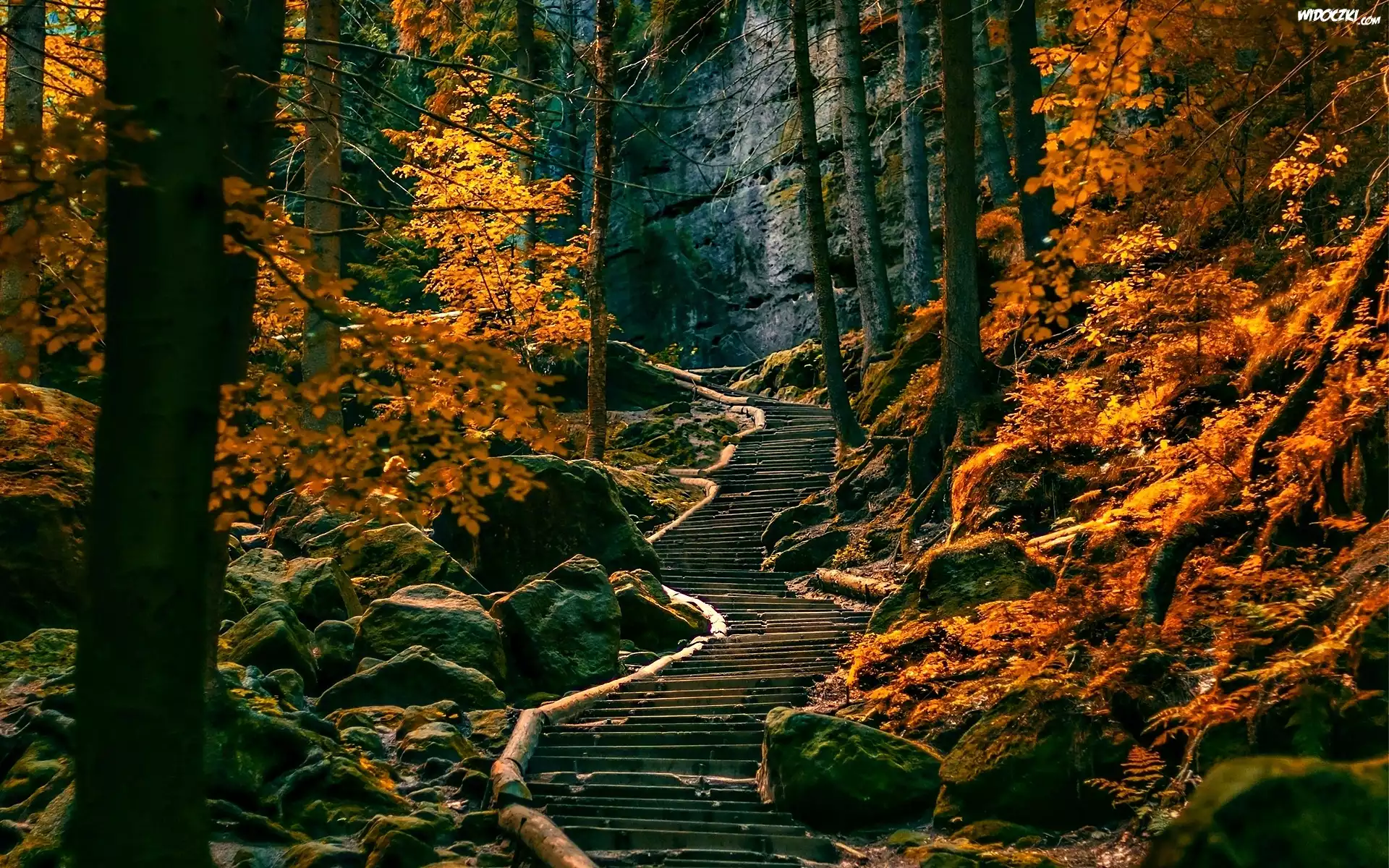 Zdjęcia, Las, Ścieżka, Skały, Jesień