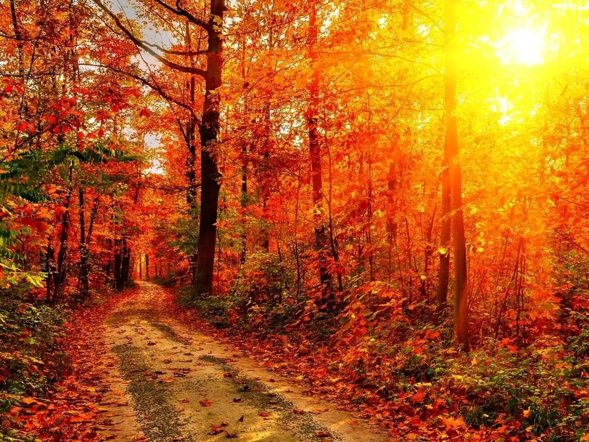 Las, Droga, Promienie, Słońca, Jesień
