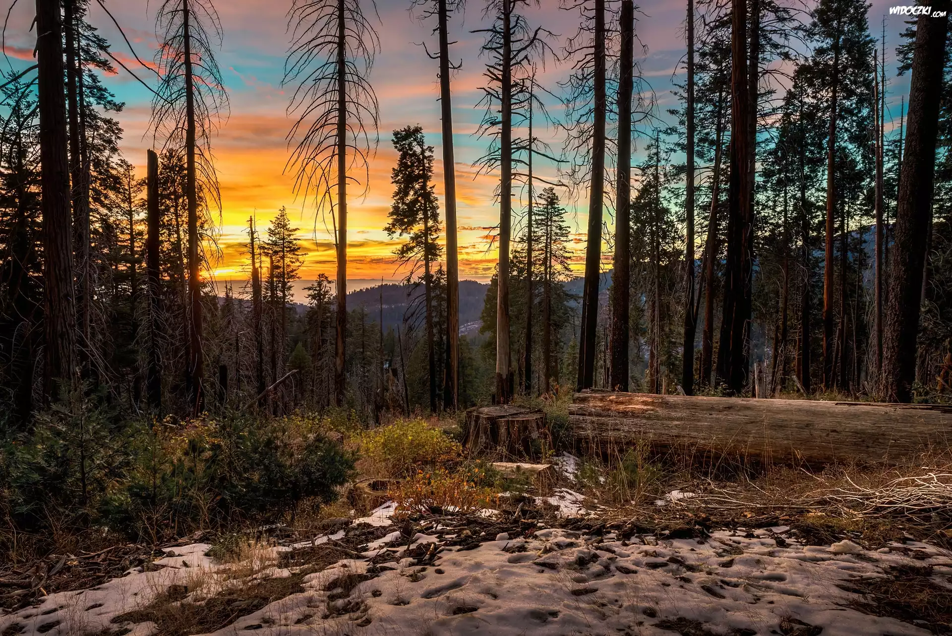 Zdjęcia, Las, Zachód Słońca, Drzewa