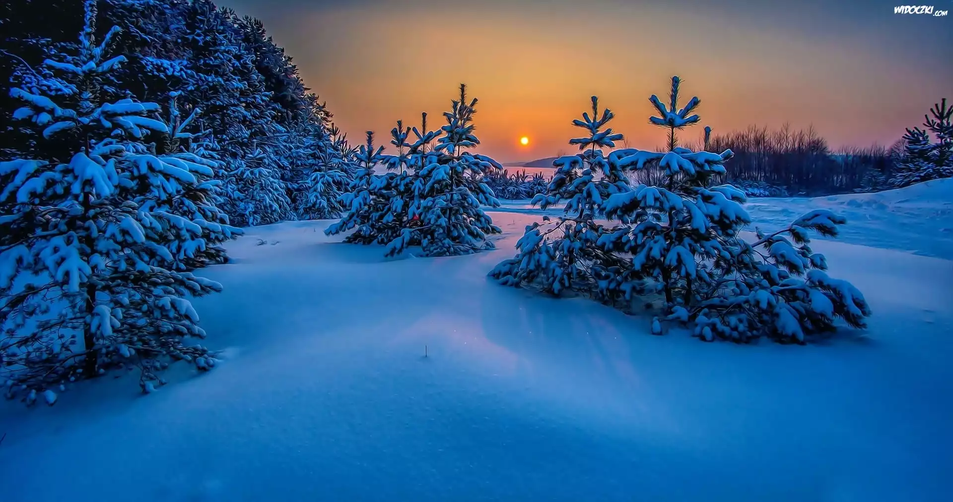 Zdjęcia, Las, Góry, Zachód, Słońca, Zima