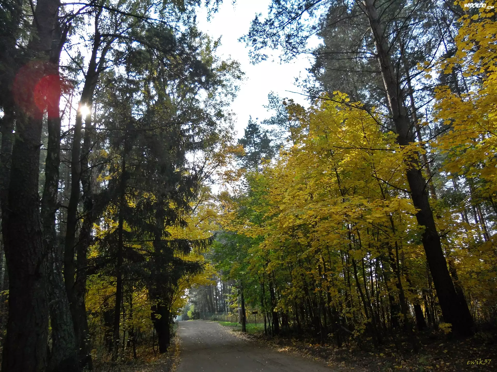 Zdjęcia, Las, Drzewa, Droga, Słoneczne, Promienie