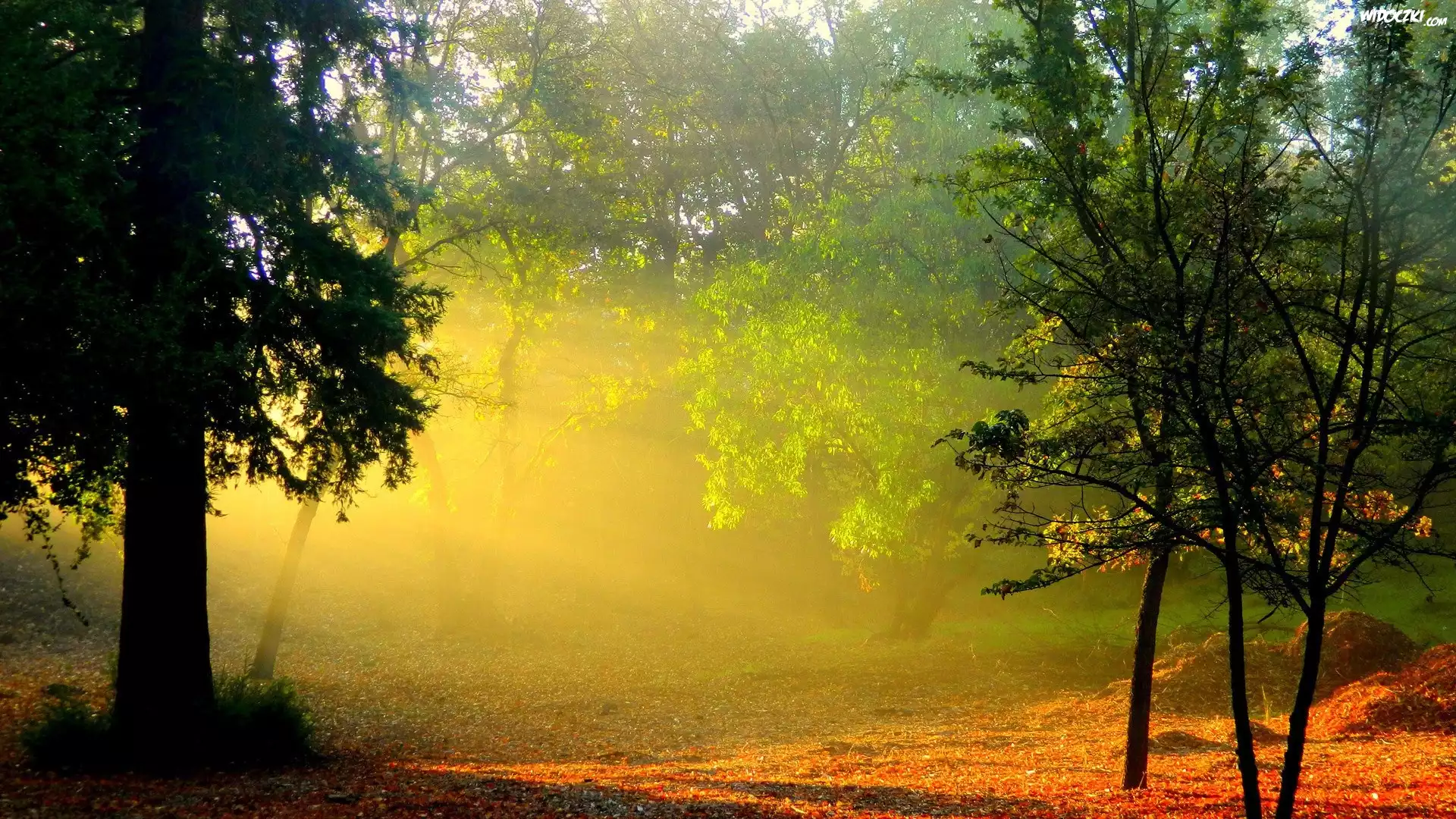 Las, Promienie, Słoneczne, Jesień