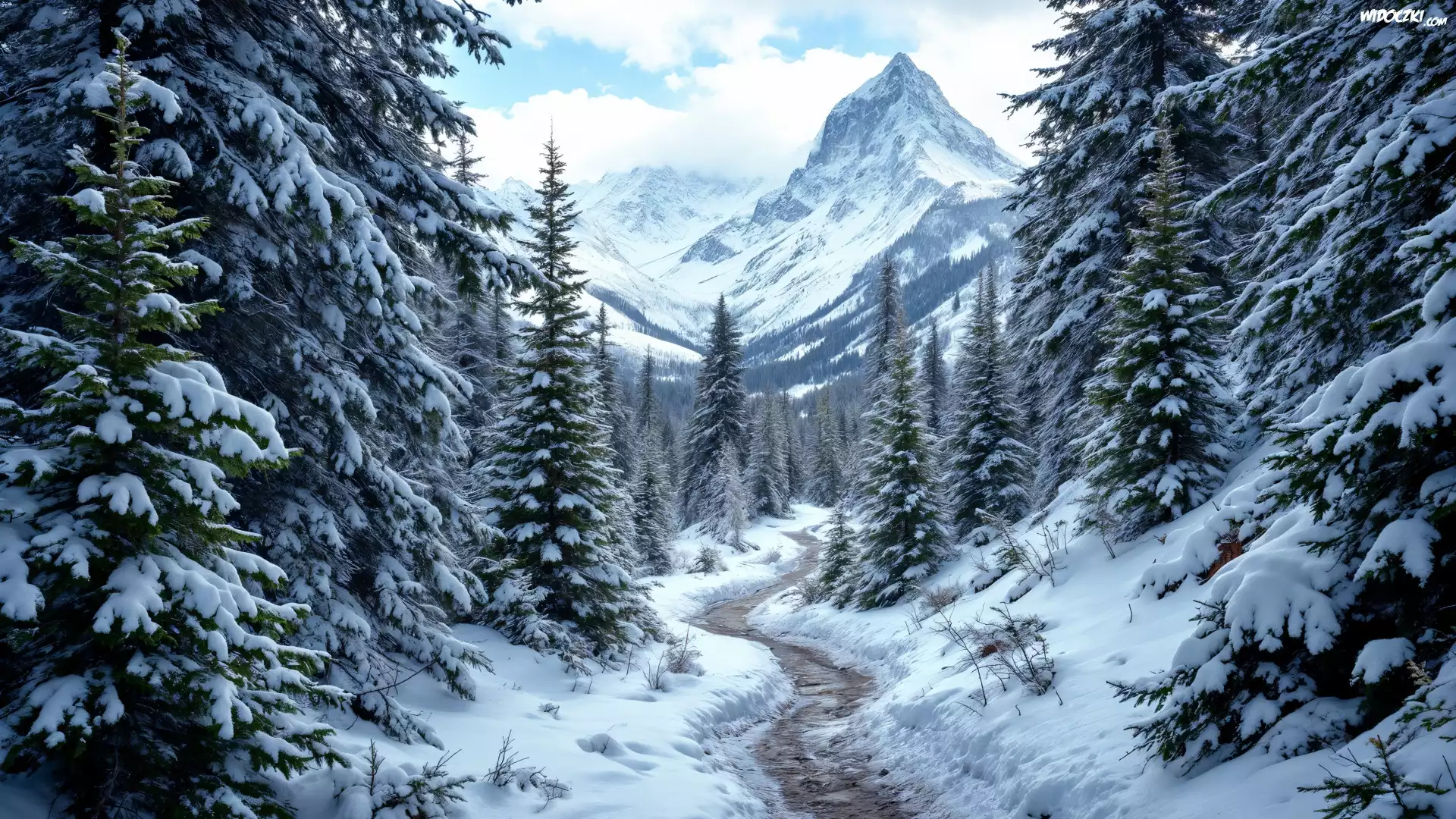 Zdjęcia, Zima, Droga, Śnieg, Las, Ośnieżone, Drzewa, Góry