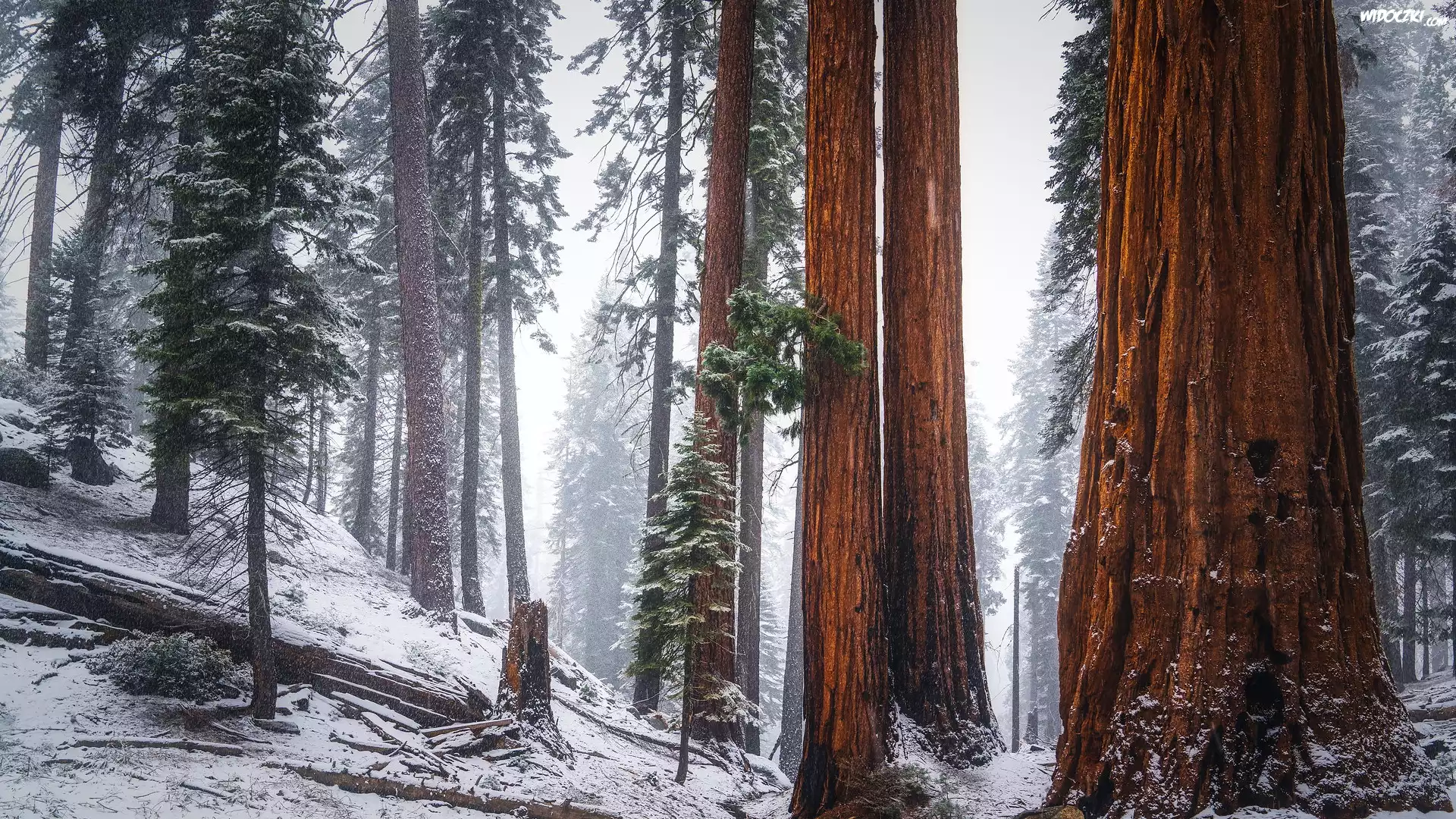 Zdjęcia, Las, Drzewa, Sekwoje, Zima, Park Narodowy Sekwoi, Kalifornia, Stany Zjednoczone