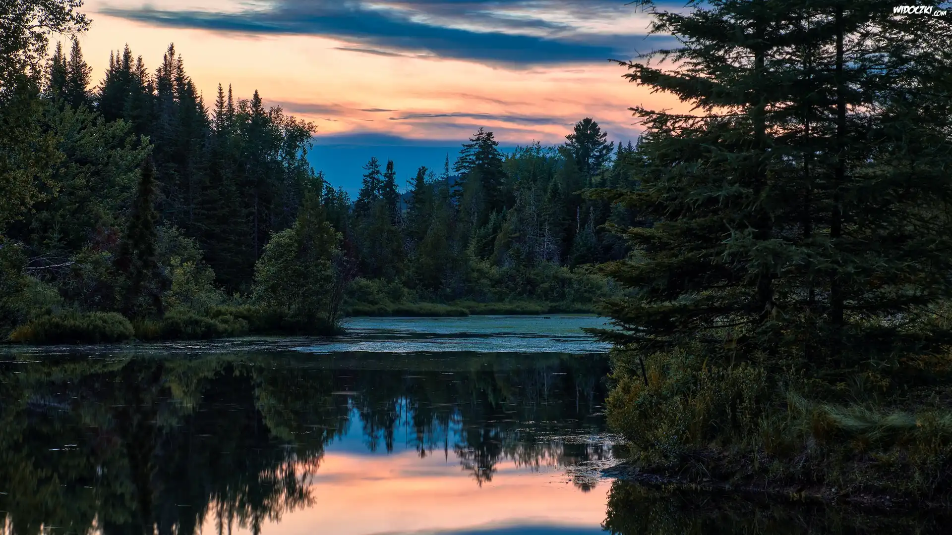 Zdjęcia, Las, Drzewa, Staw, Odbicie