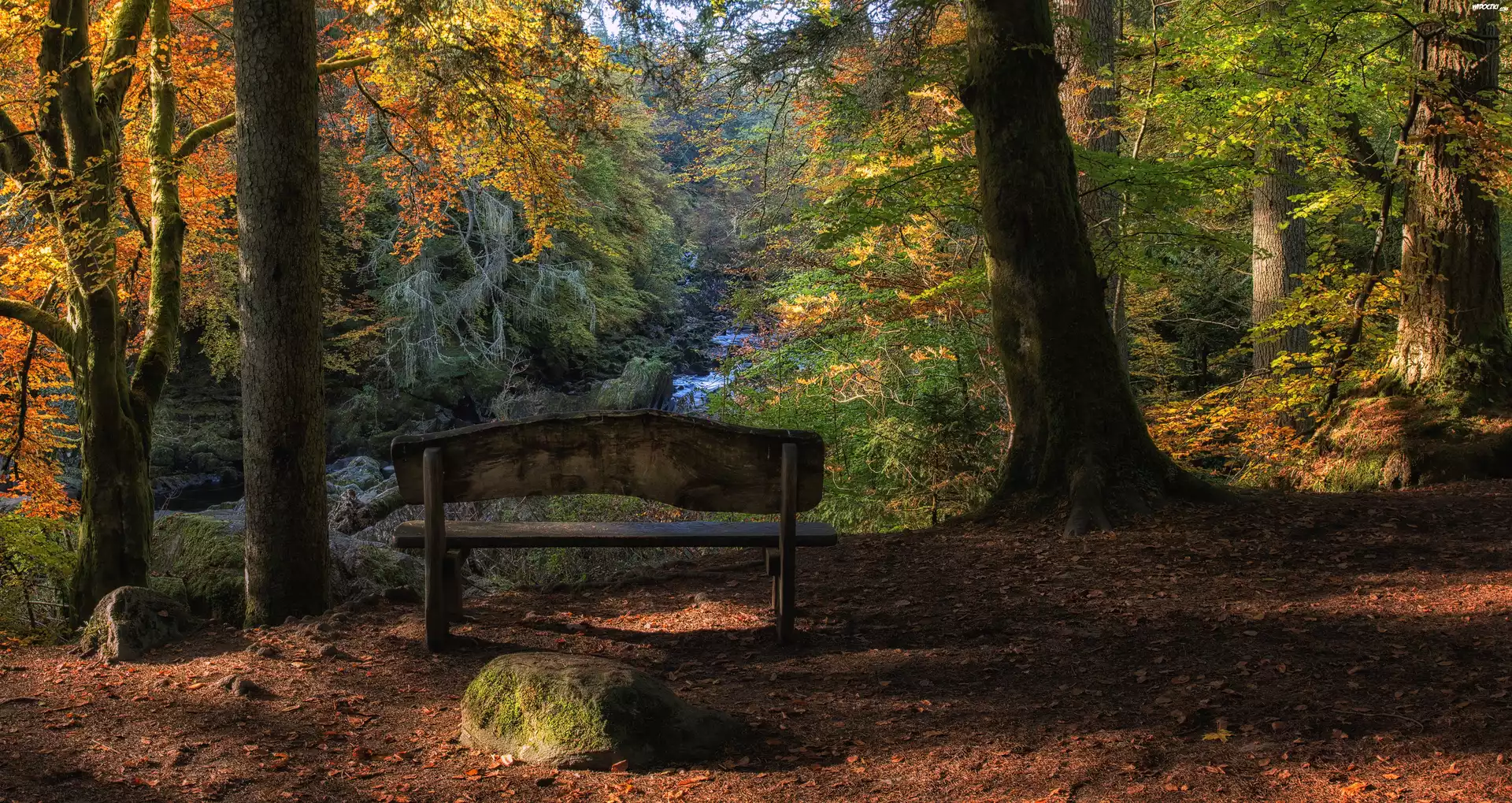 Zdjęcia, Las, Ławka, Strumyk, Jesień