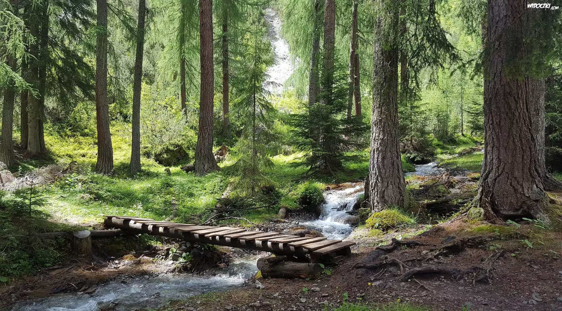 Zdjęcia, Las, Iglasty, Strumyk, Kładka