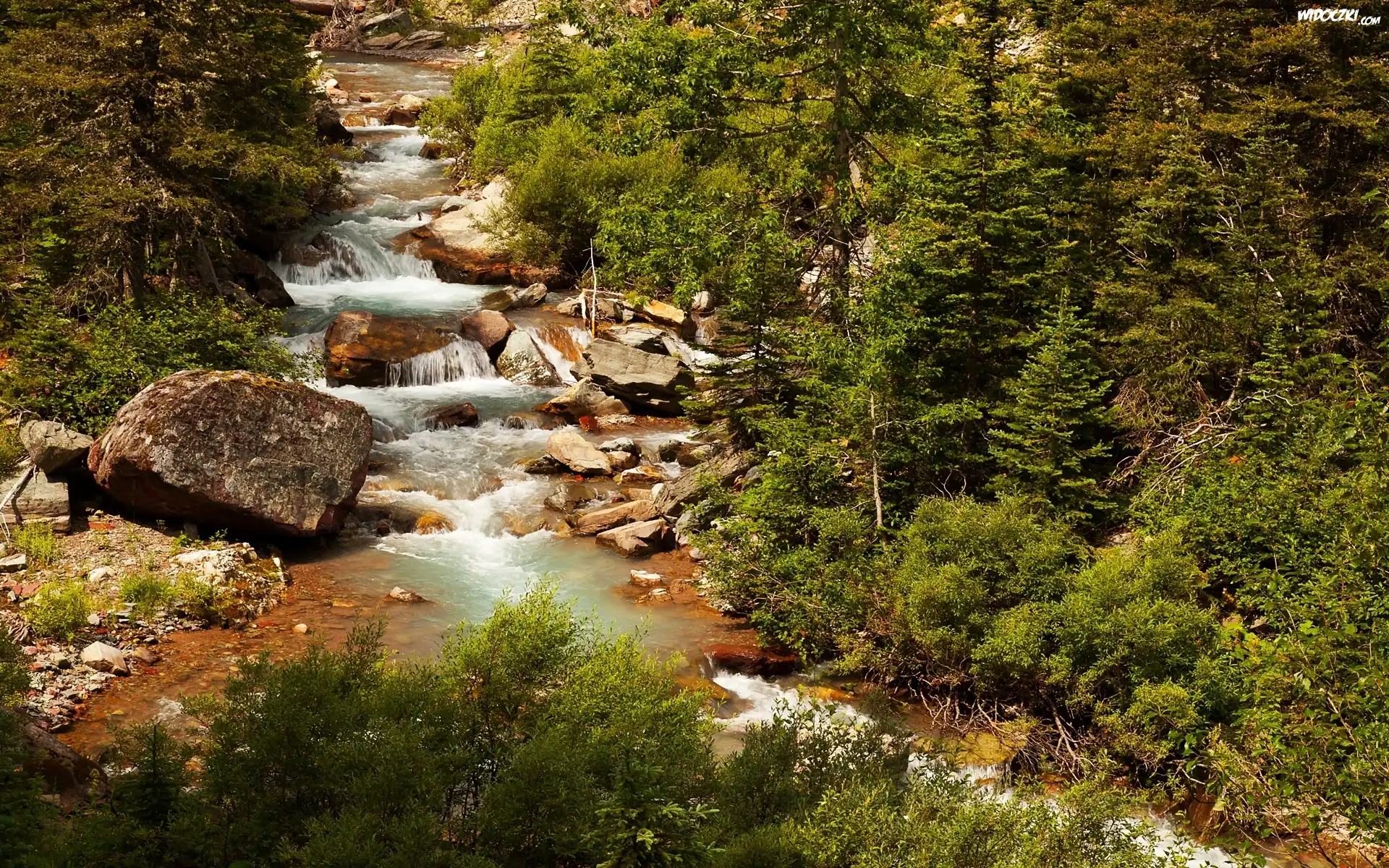 Zdjęcia, Las, Rzeczka, Strumyk, Kamienie