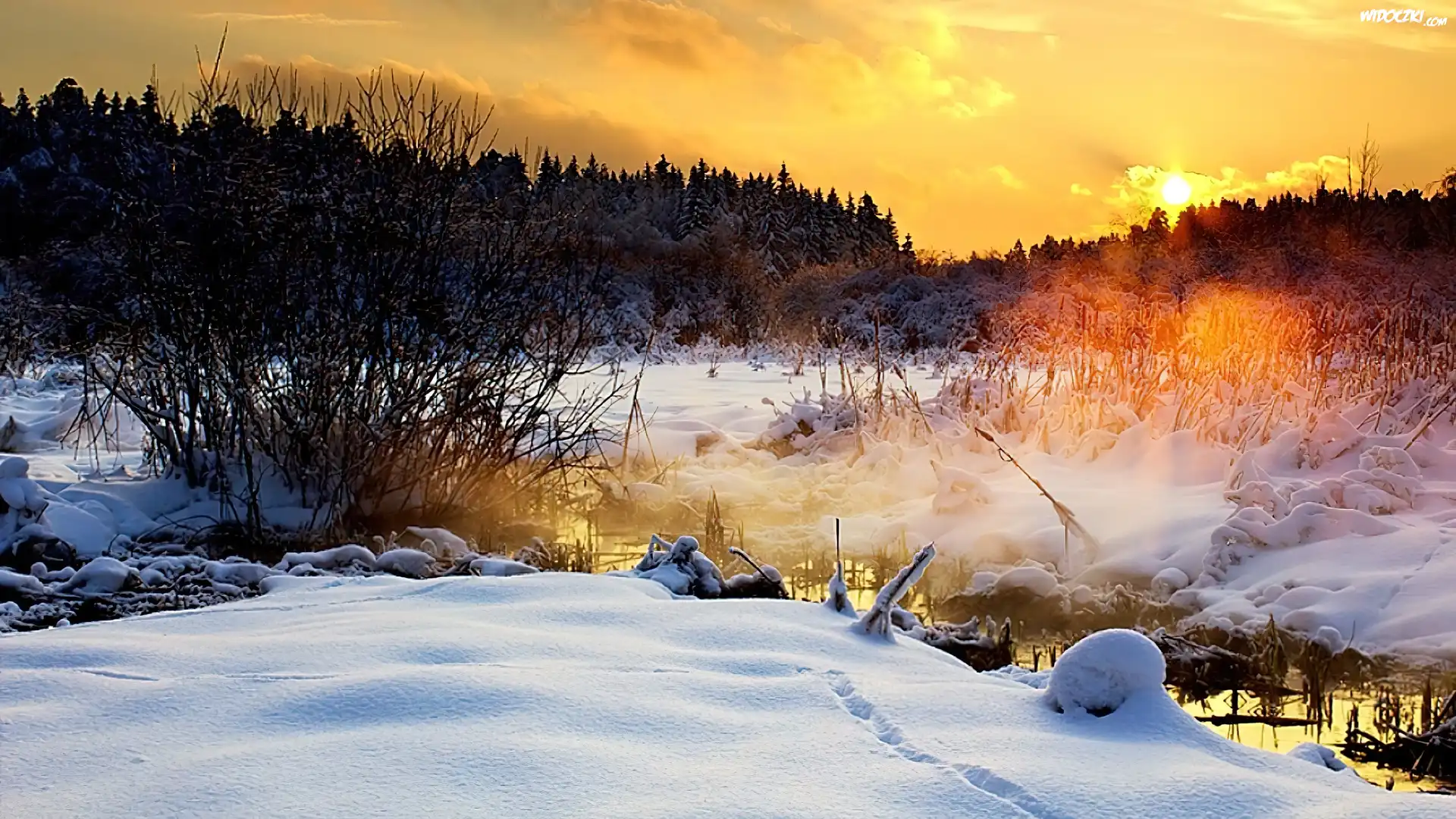 Zdjęcia, Las, Słońce, Strumyk, Zima