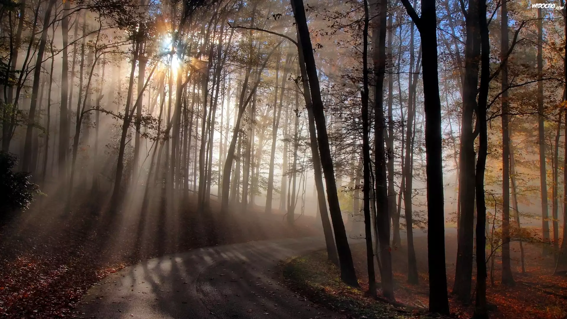 Zdjęcia, Las, Droga, Przebijające światło, Mgła