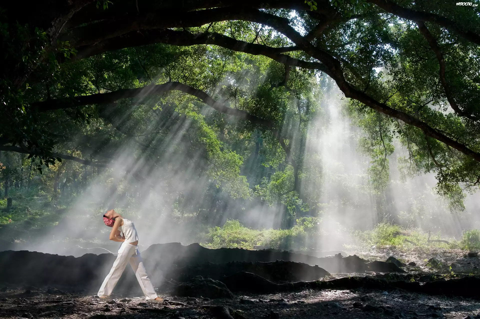 Zdjęcia, Las, Przebijające światło, Kobieta