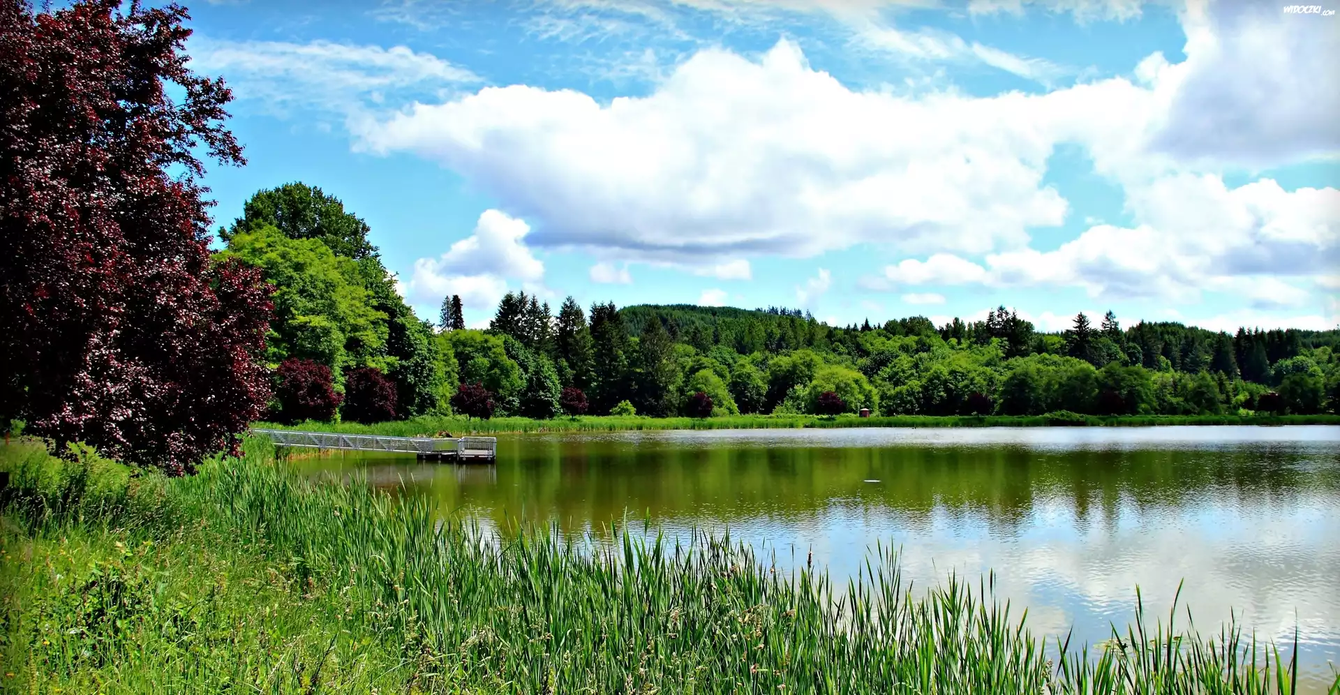 Zdjęcia, Las, Jezioro, Szuwary, Obłoki