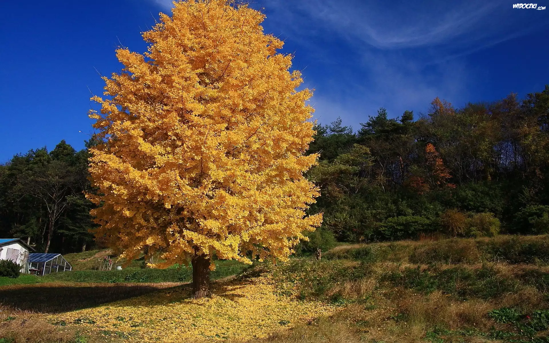 Zdj臋cia, Las, Drzewo, Trawy, Domki