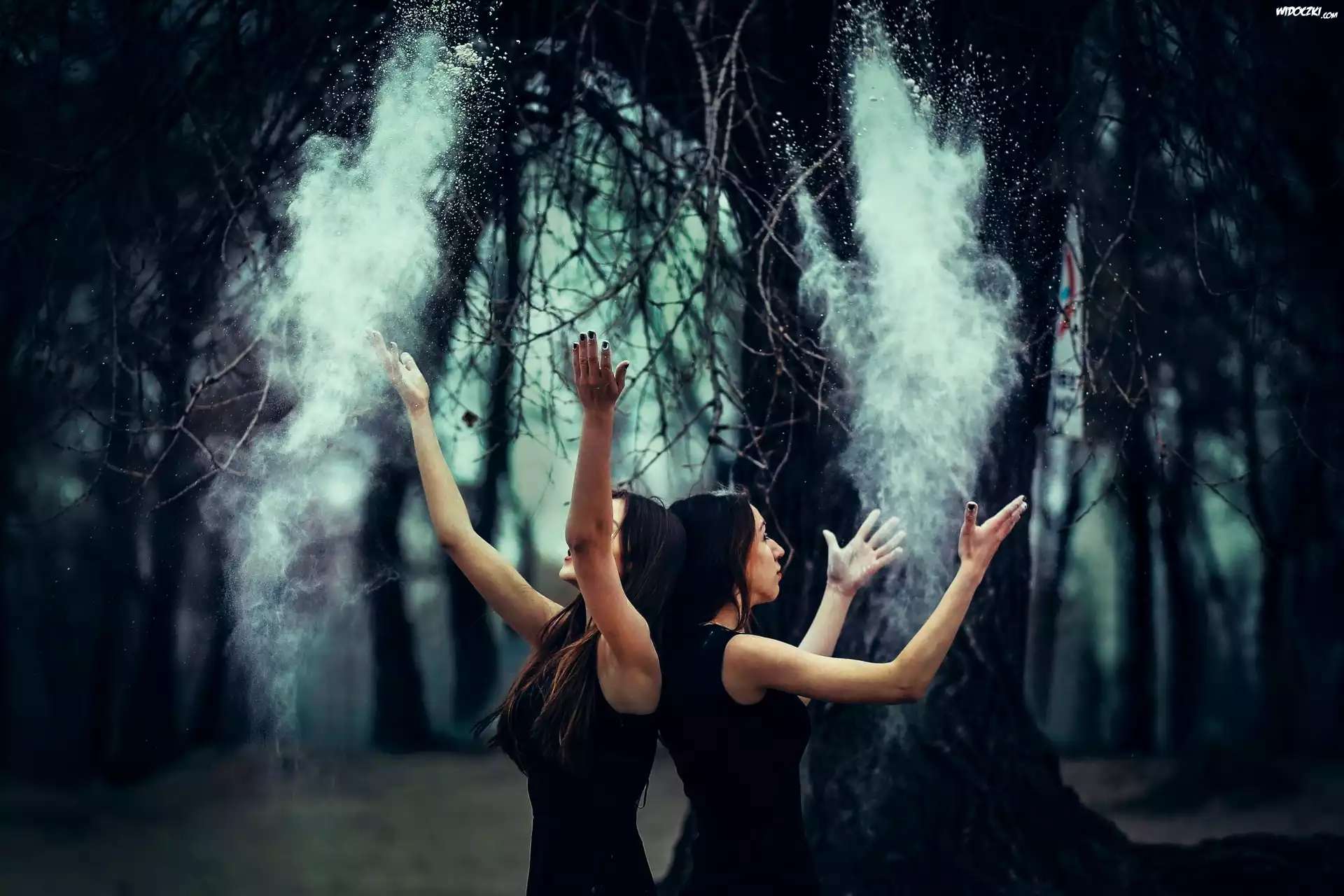 Zdjęcia, Las, Kobiety, Uniesione, Ręce