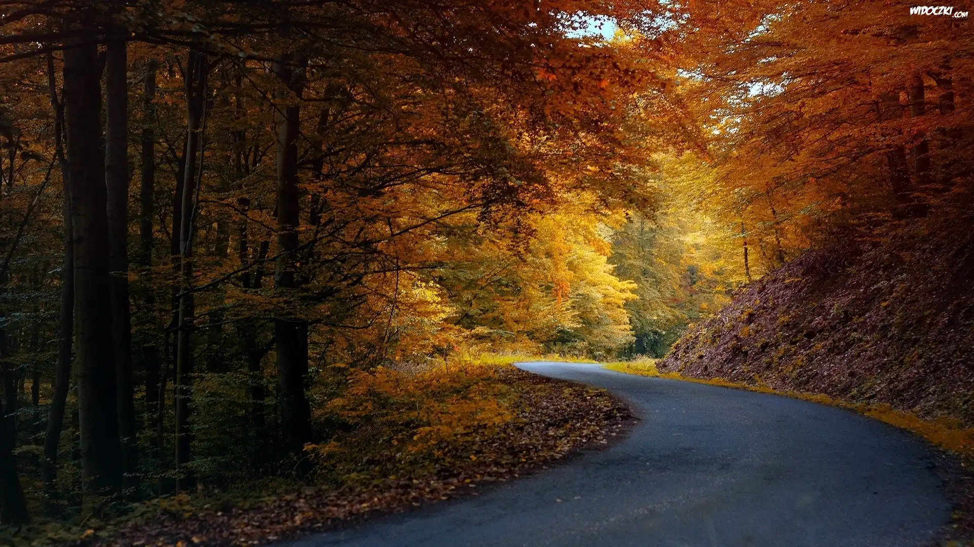 Zdjęcia, Las, Droga, Liście, Światło, Jesień