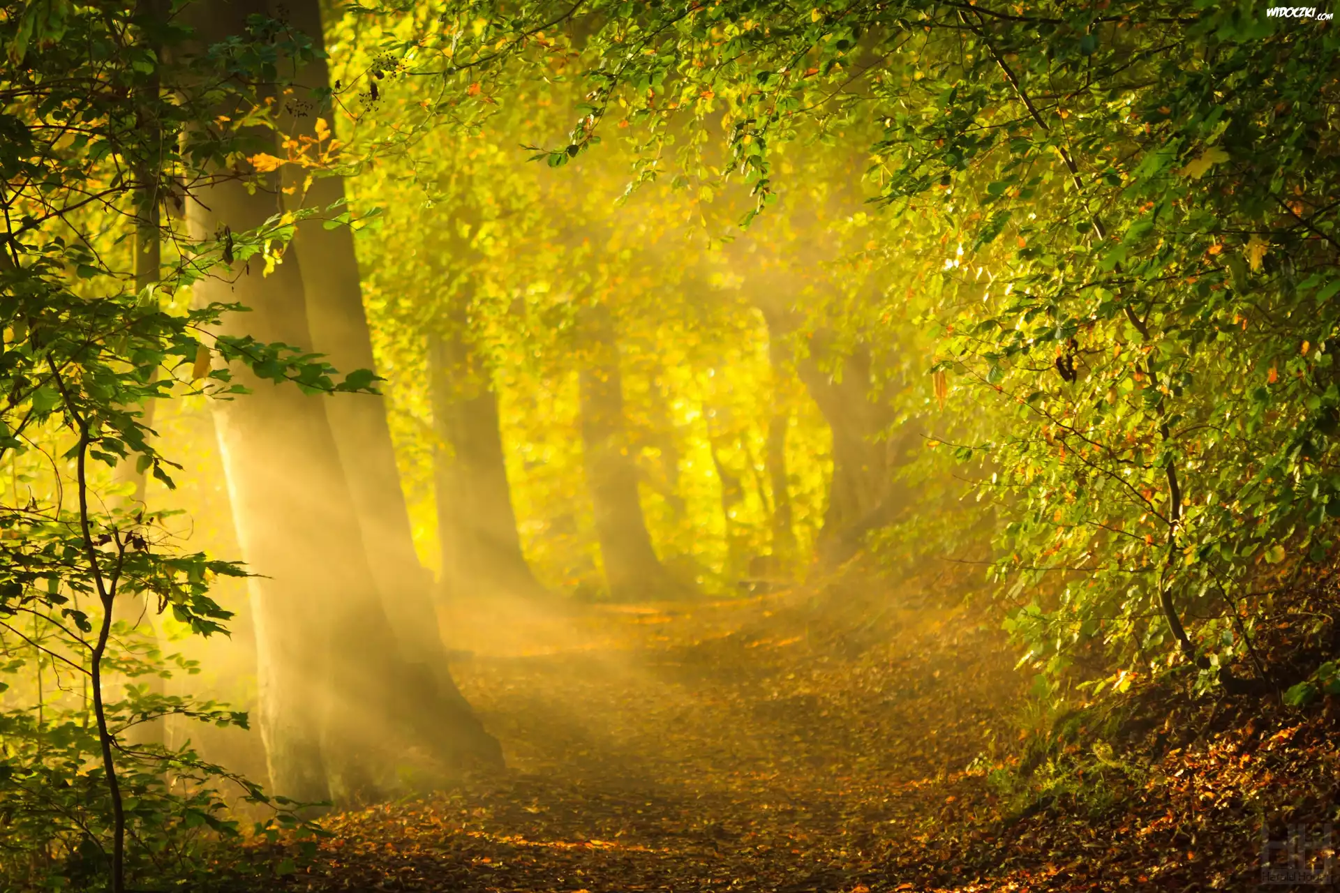 Las, Drzewa, Przebijające, Światło, Jesień