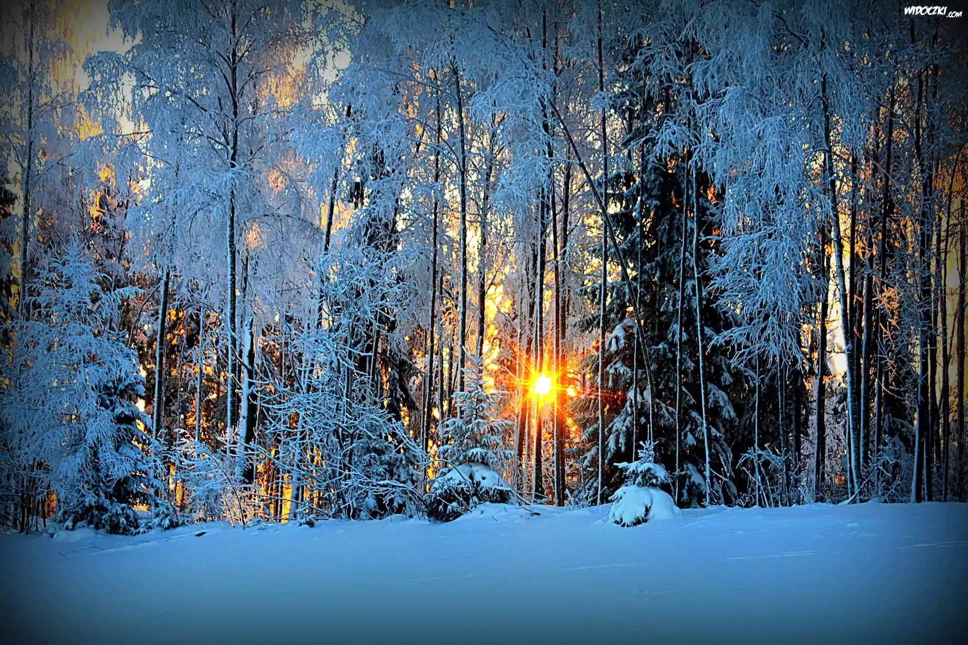 Zdjęcia, Las, Przebijające, Światło, Zima