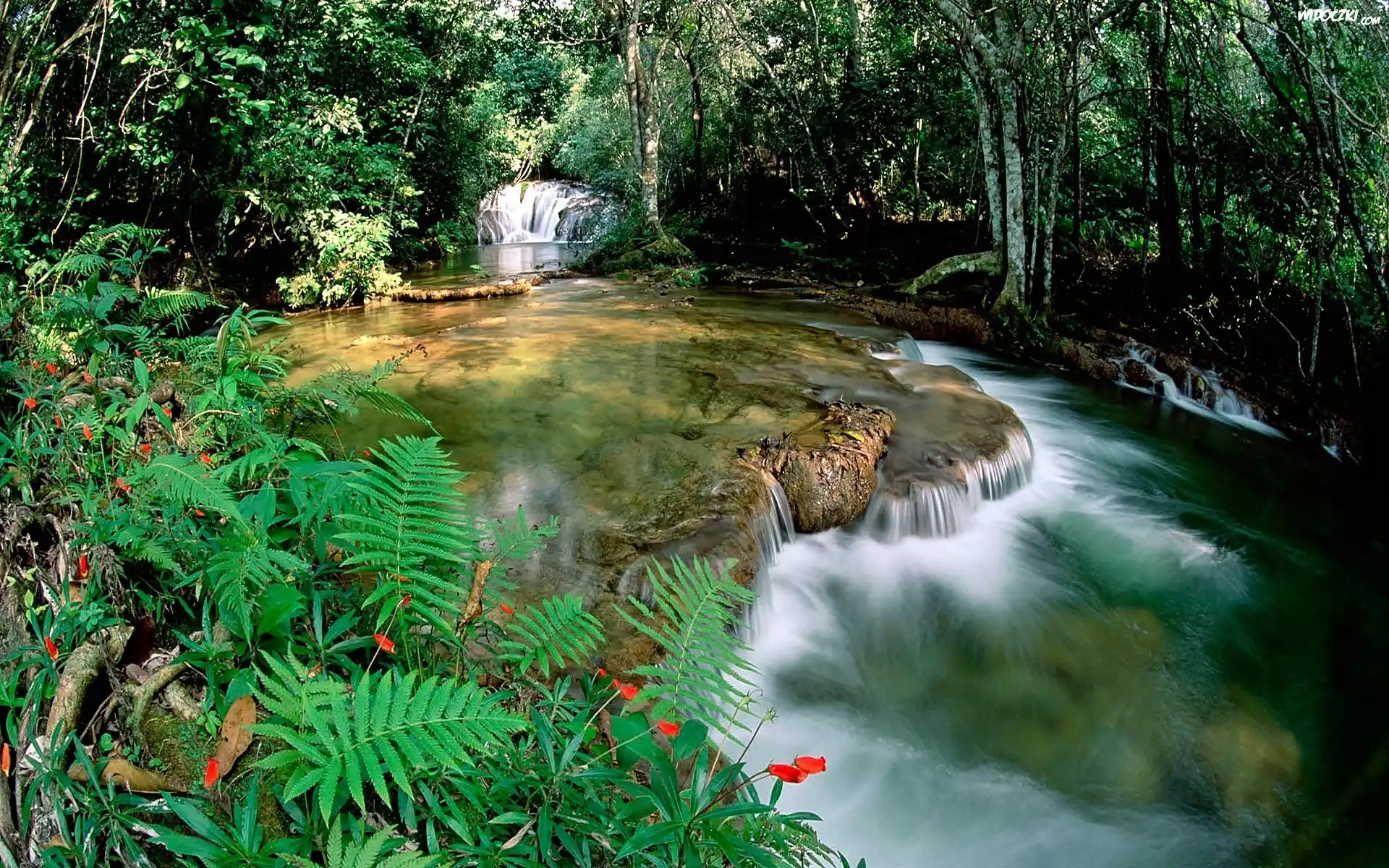 Zdjęcia, Las, Rzeka, Wodospady, Światło, Cienie