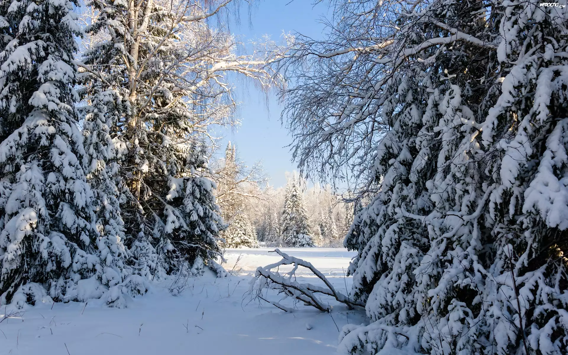 Zdjęcia, Las, Ośnieżone, Świerki, Zima