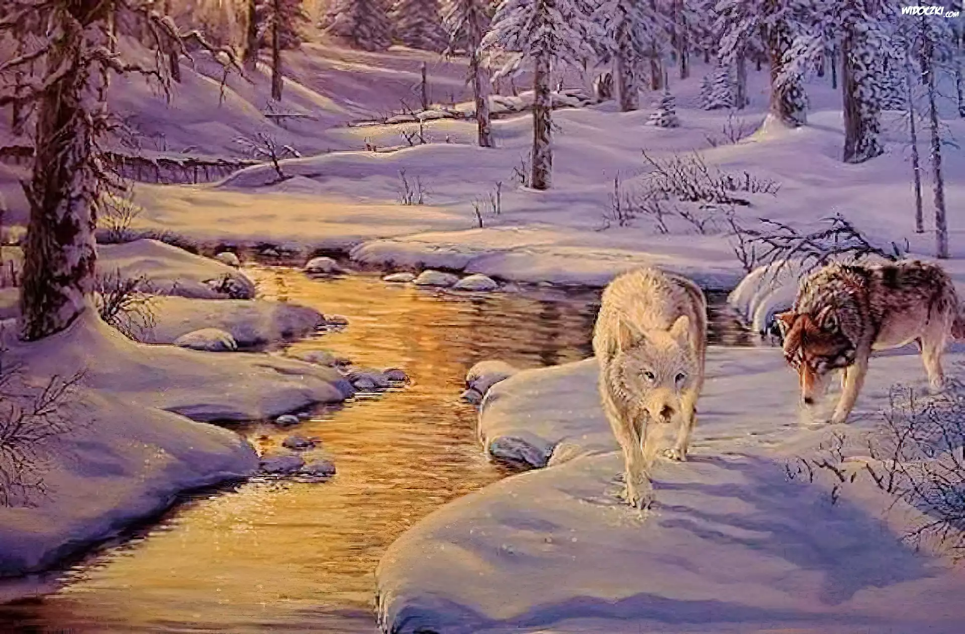 Zdjęcia, Wilki, Las, Zima