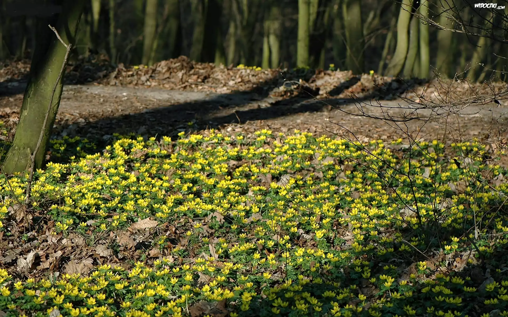 Zdjęcia, Wiosna, Las, Rannik, Zimowy, Przebijające, Światło, Romycie